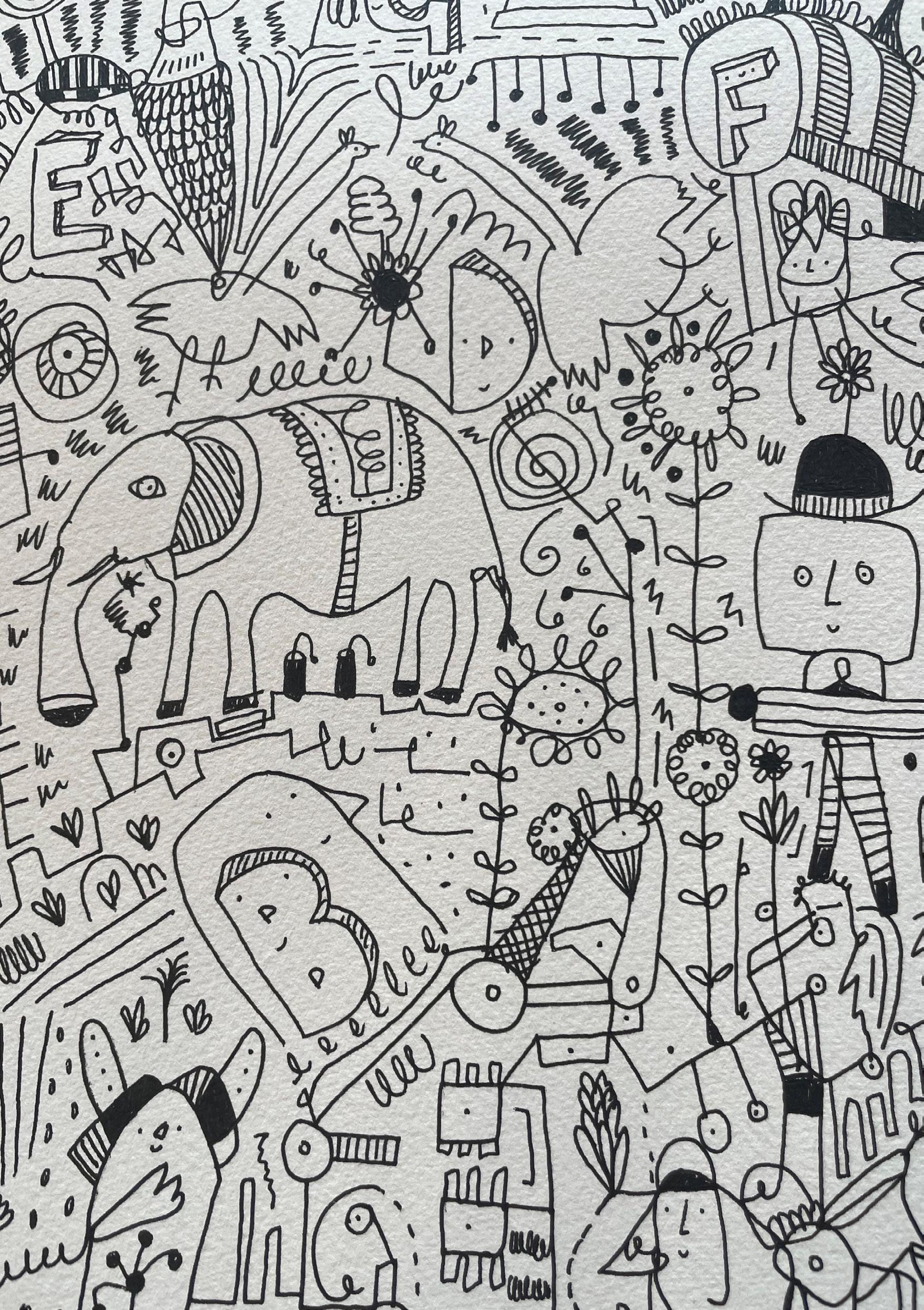 I invite you to come and explore my drawings that I have created by pen, ipad, oil pastel, ink, fingers, hands, knees and toes. Perhaps not the last couple of body parts. Fun, colour and nonsense for everyone, an escape from the serious, stuffy and bland.