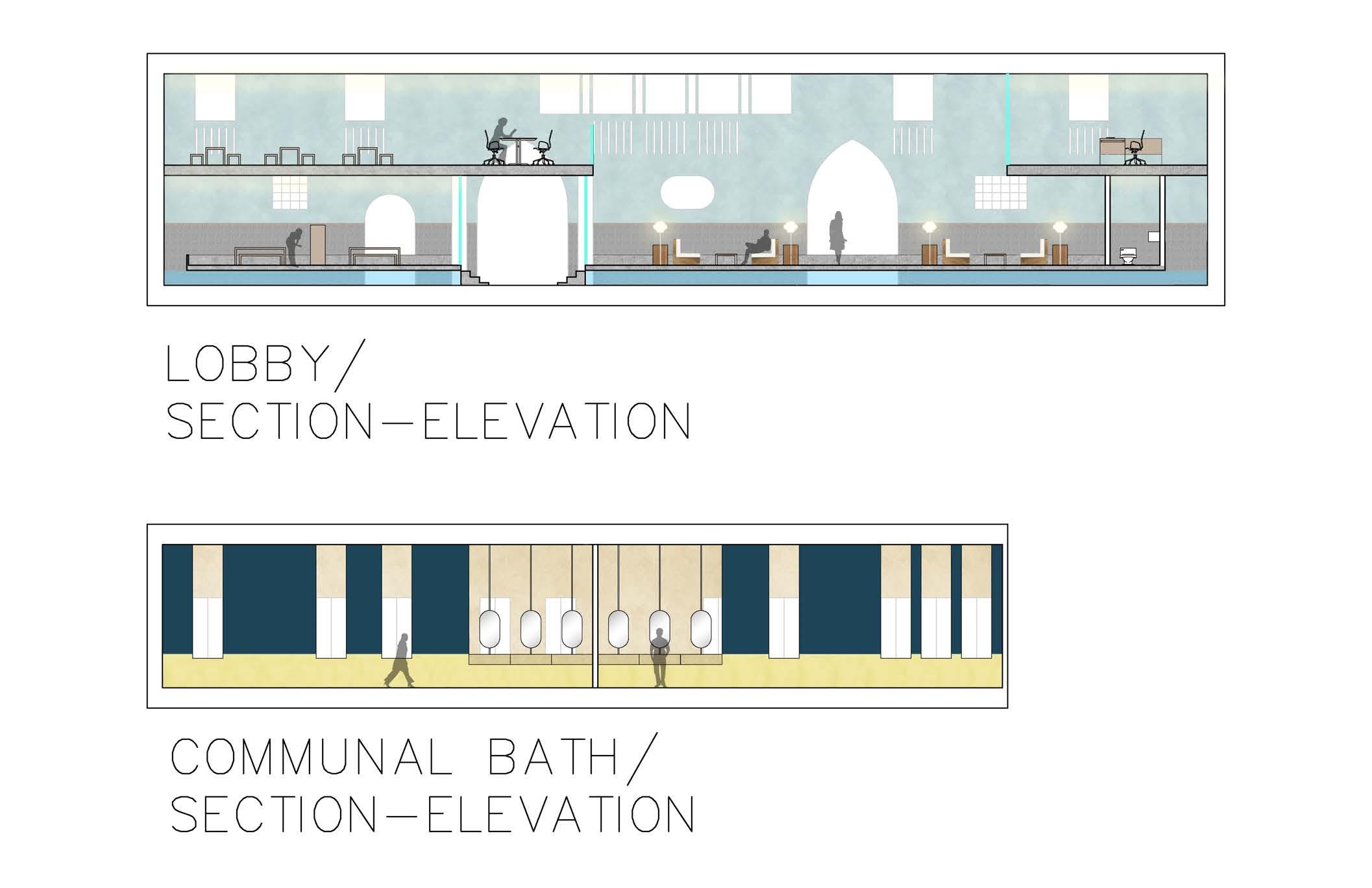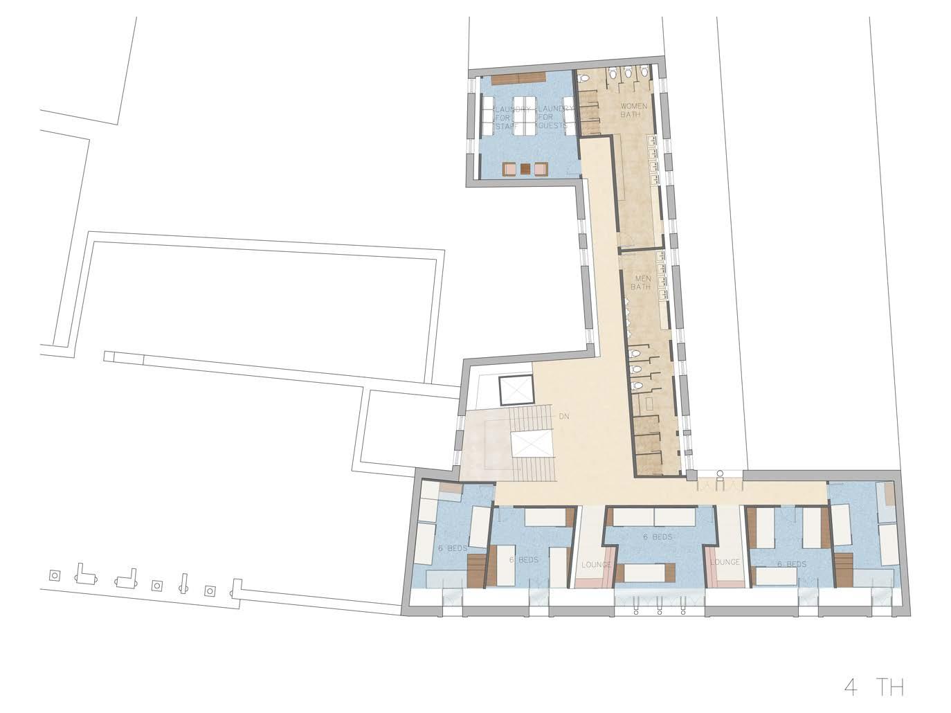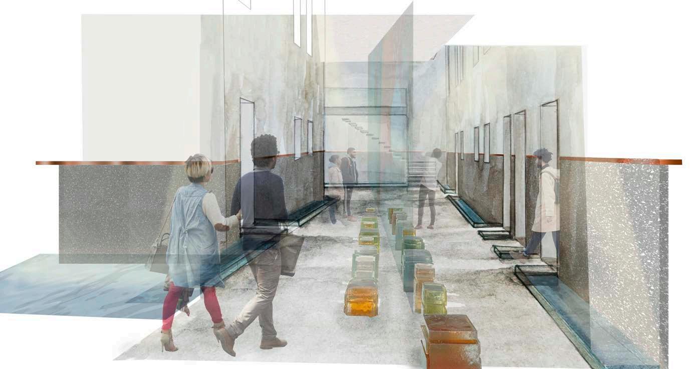 A group Hostel project located in Venice, Italy dealing with the current sustainability issues of global warming. As the Venice Aqua Alta floods the city often during the year this hostel aims to embrace the flood waters and take them into the space. Water enters under the reception area moving into canals