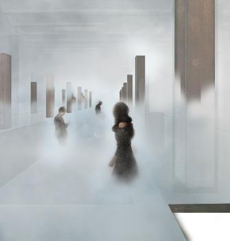 As you ride in the subway to the Broadway G stop, you have the option of embarking on your personal spiritual journey after traveling through an argues journey in the train, and the suffering of this lifetime. Once entered the space you are greeted with rooms of mist, water and darkness evoking the sense