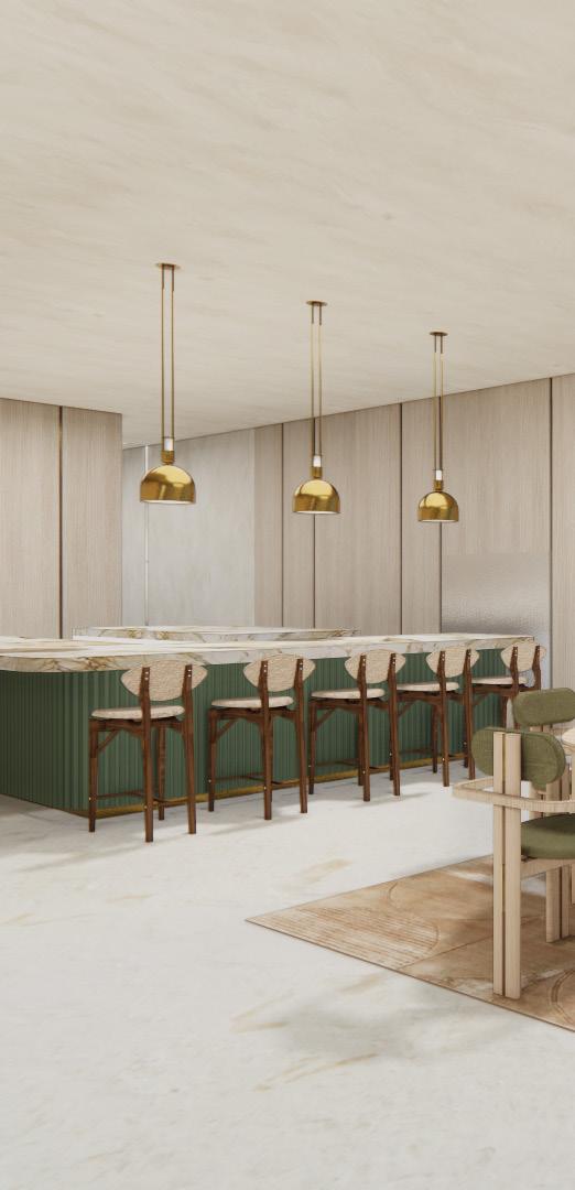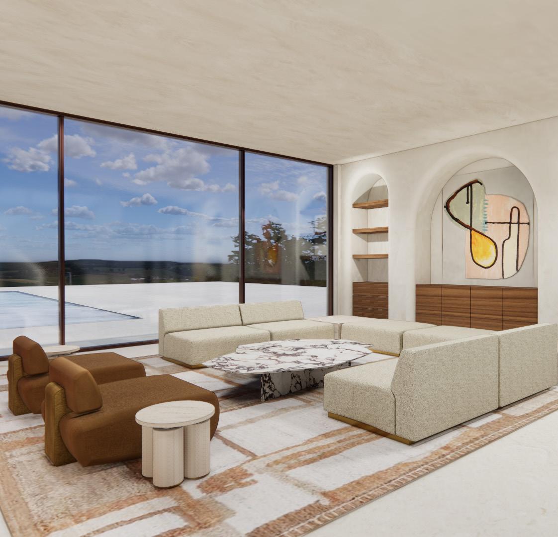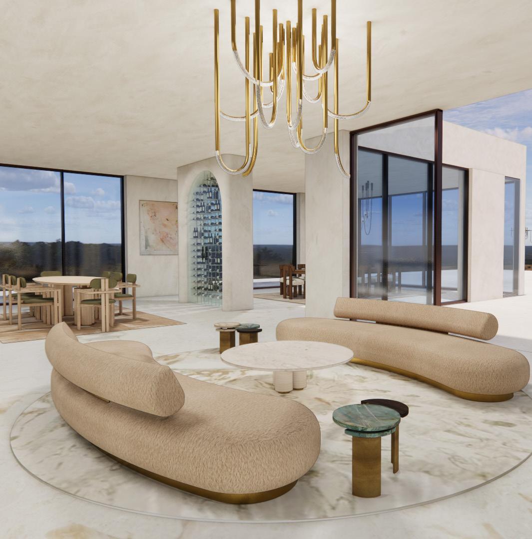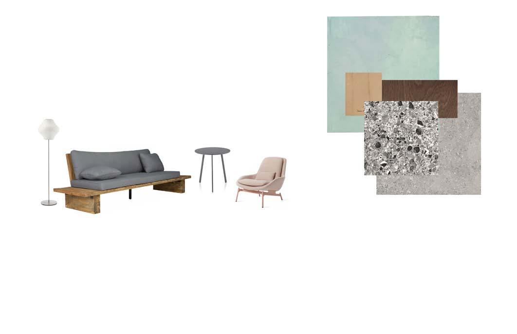 lighting, art, and decorative accessories. The concept for this project is to create a soft, feminine, sculptural space with unique pieces that elevate the space. Areas I have assisted in sourcing and designing are the office and Terrace space. I have created presentations for the client including sourcing furniture,