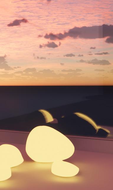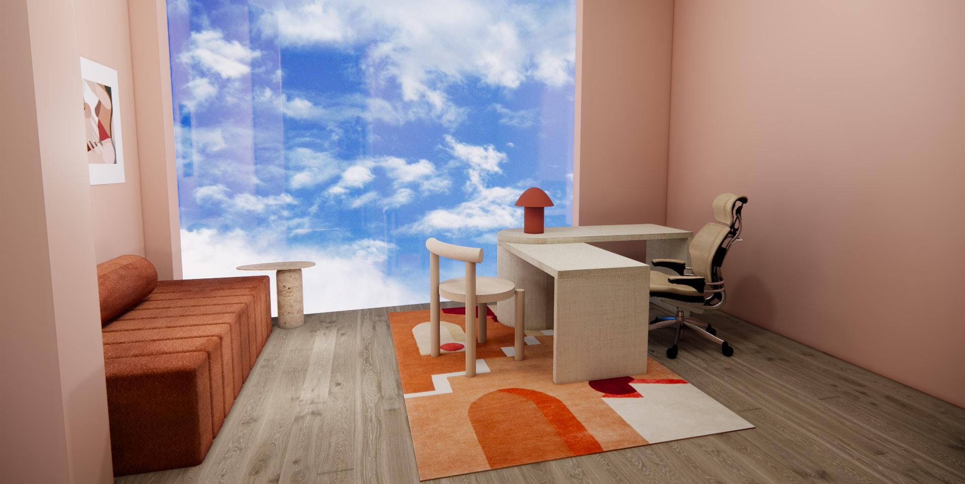 A sunset looking over the sky while the rays reflect inside. Soft and feminine, textural and warm, a place to call home.
