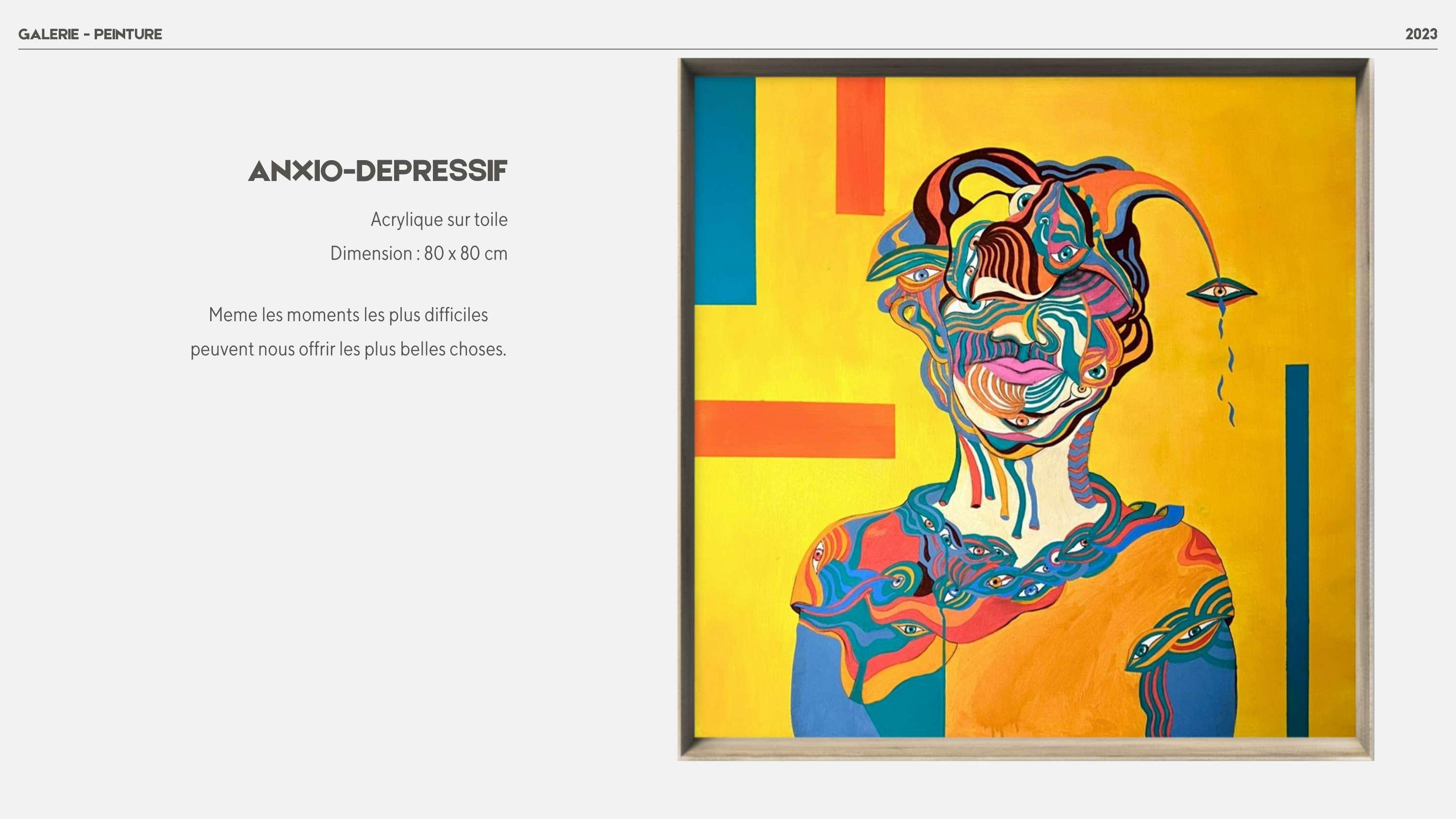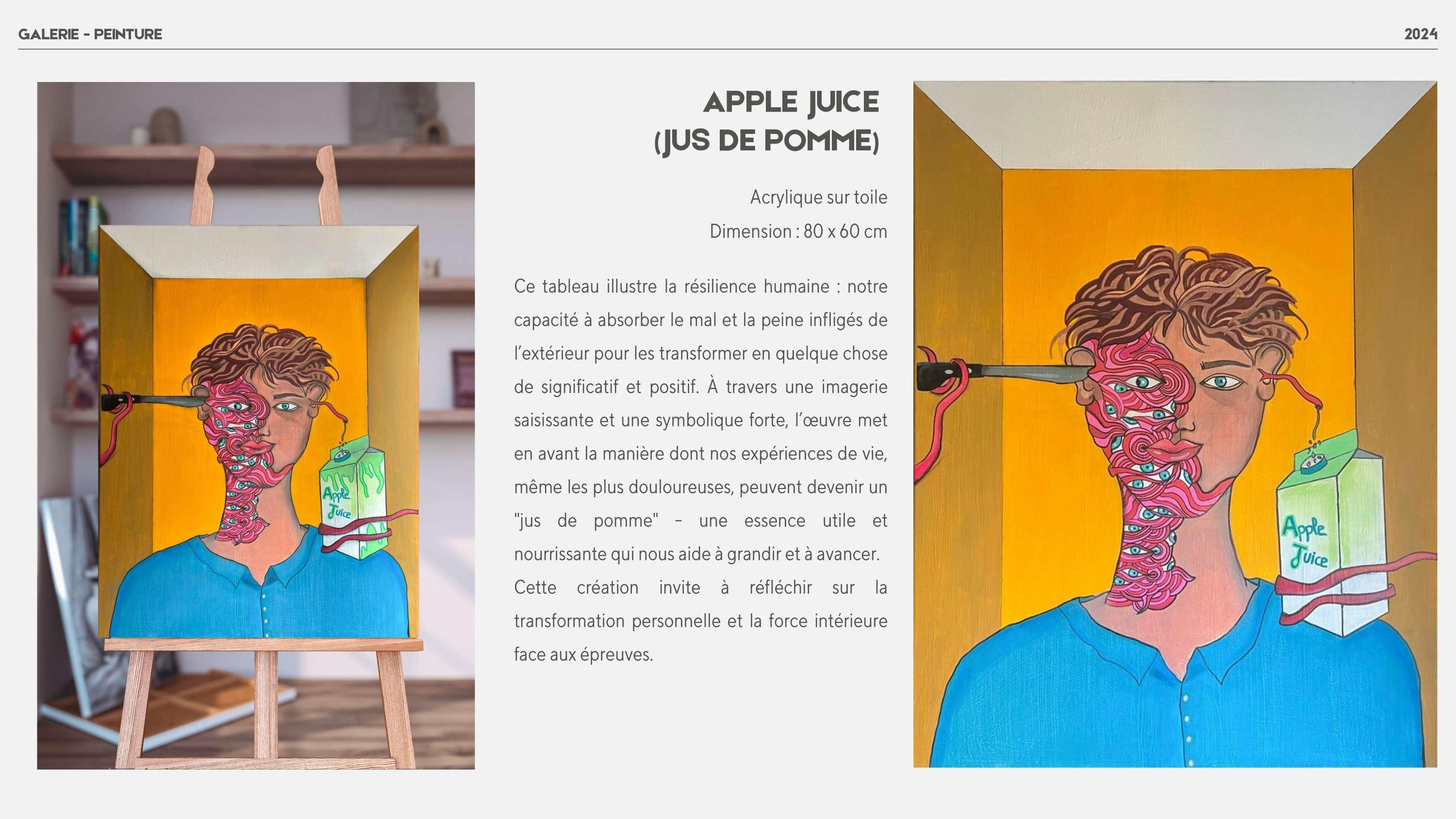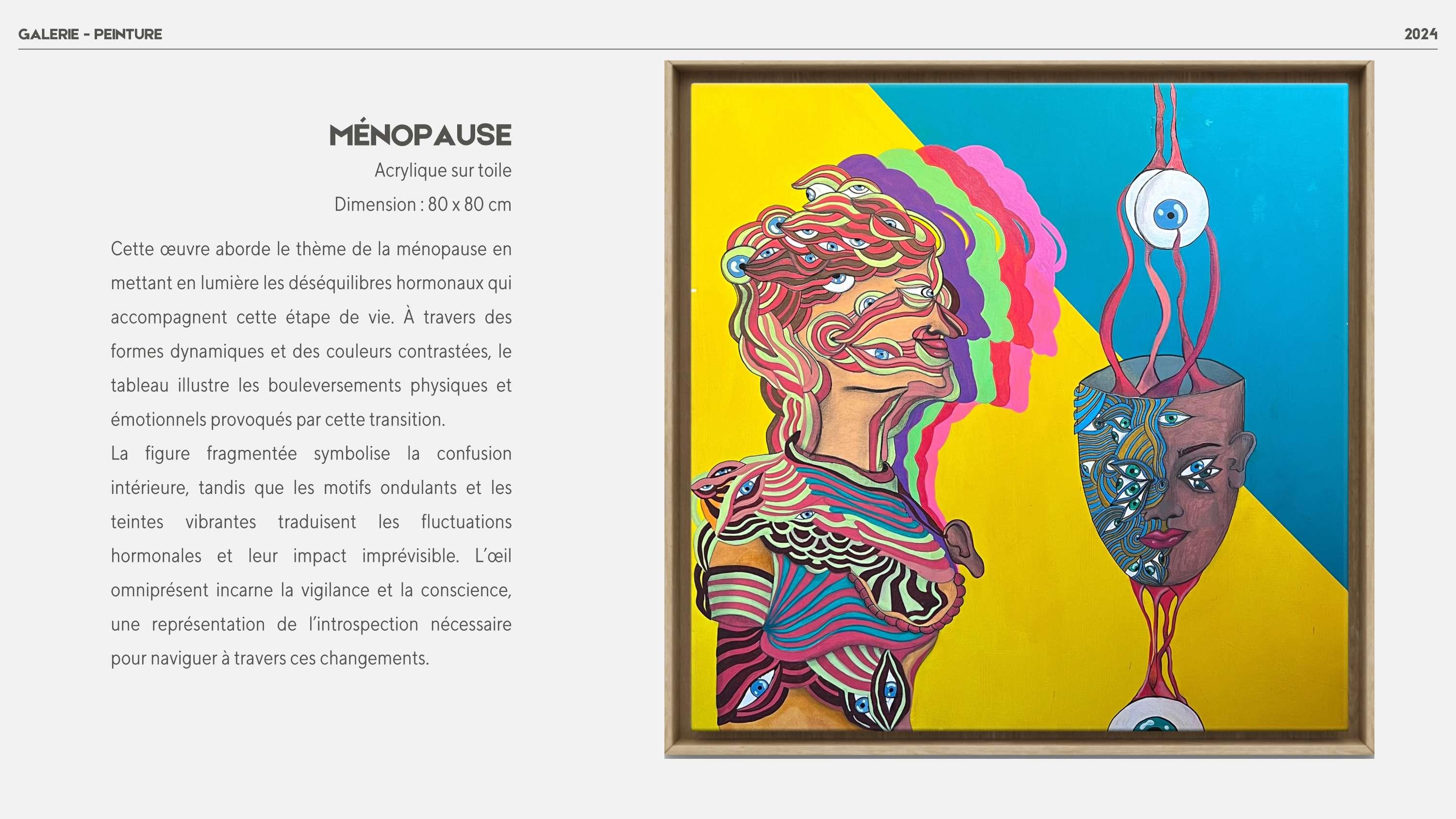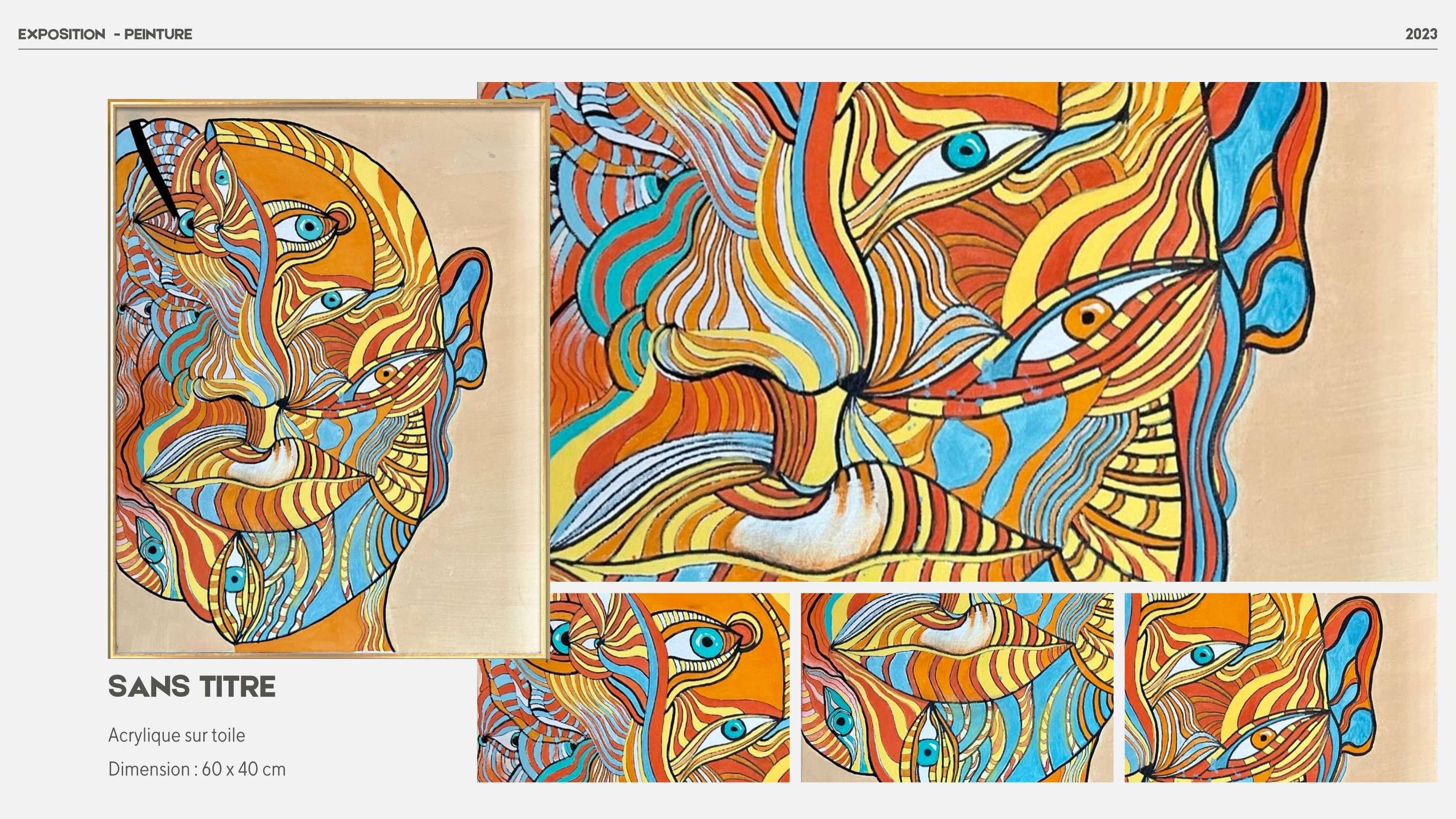 Mouna Dakkak, artiste visuelle basée dans la région lyonnaise et de formation architecte, explore à travers son travail les dimensions émotionnelles et sociales des portraits. Inspirée par le surréalisme, elle développe une pratique artistique hybride, mêlant l’acrylique sur toile, le dessin digital sur tablette et des créations sur divers supports comme le textile, les objets décoratifs et les accessoires.