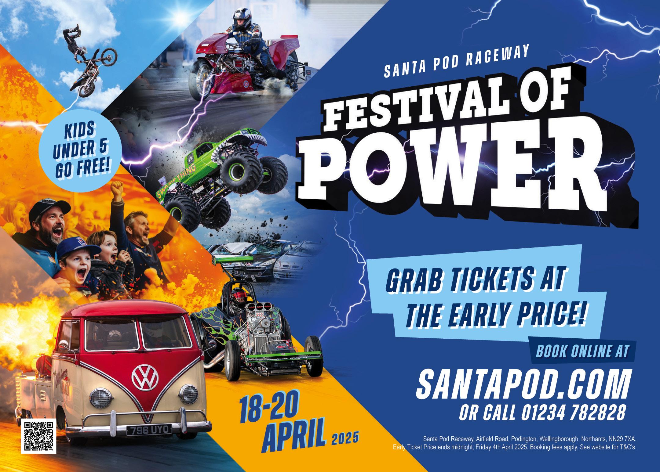 Get ready for an action-packed, adrenaline-fueled Easter weekend at Santa Pod Raceway! Witness the raw power of Top Fuel Dragsters, Nitro and Nostalgia Funny Cars, and Pro Mods battling it out at over 250mph in the National Drag Racing Championships. Blink and you’ll miss it, as Jet Cars ignite the track in the Jet Car Shootout, reaching mind-blowing speeds! The Live Action Arena is set to thrill with Monster Trucks, stunt legends Terry Grant and Lee Bowers, and a Pit Party where you can meet the stars up close. Meet Bumblebee the Transformer, Bluey and enjoy Mini Monster Trucks, a funfair, plus so much more. Complimentary camping included with all multi-day tickets, and kids under 5 go FREE! Flexi-day tickets available. Don’t miss this unforgettable Easter extravaganza! Book now at www.santapod.com or call the box office on 01234 782828