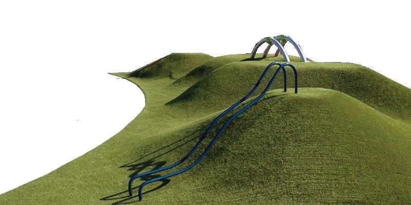 involved. One may briefly ponder in thought if he or she could make the leap to a surface across from a gap or could slide down a steep slope. For example, objects no.1 through no.4 have landings that are not connected to the rest of the top surfaces which acknowledges the visitor to be present in the moment and to position footsteps accordingly.