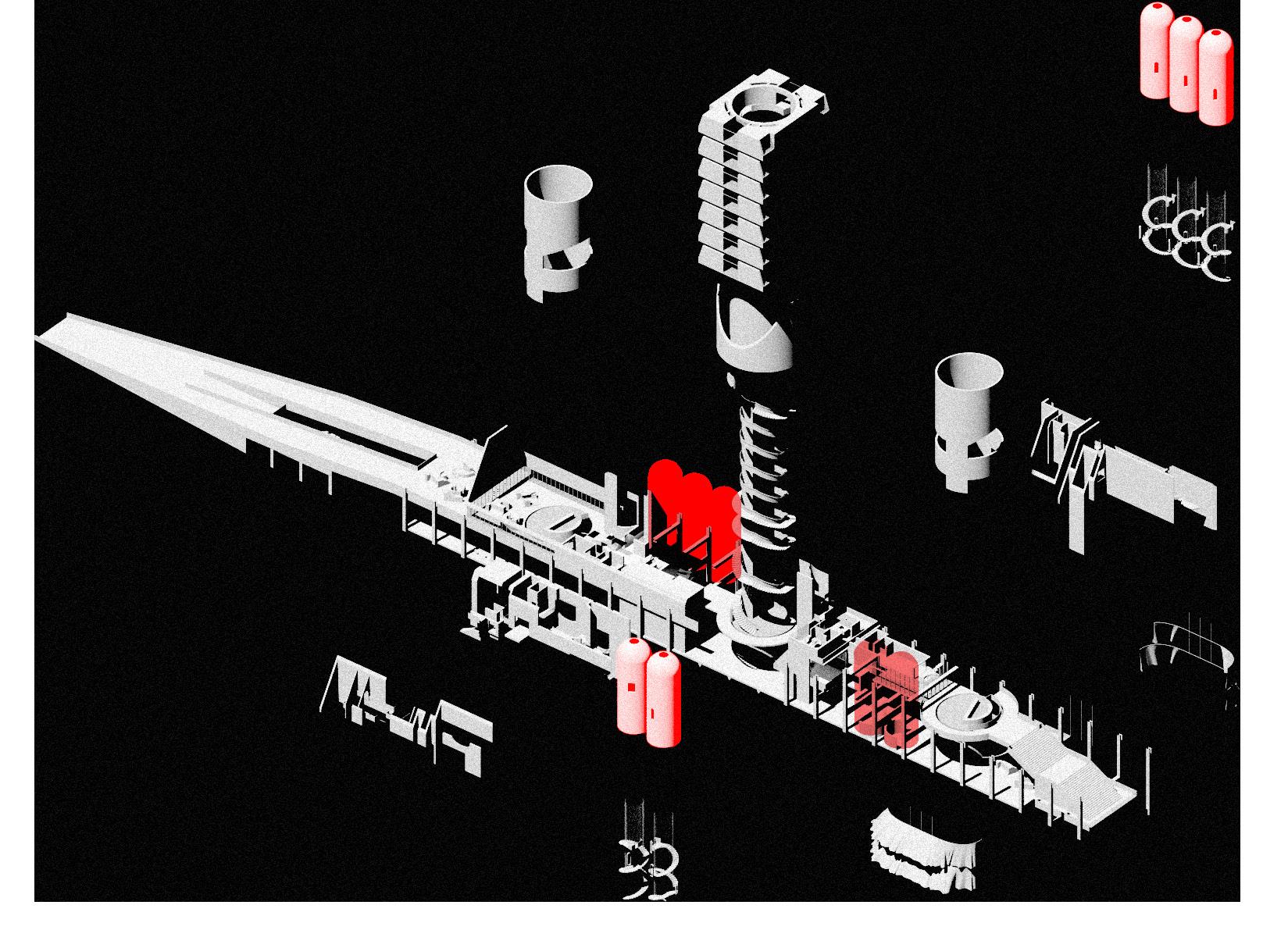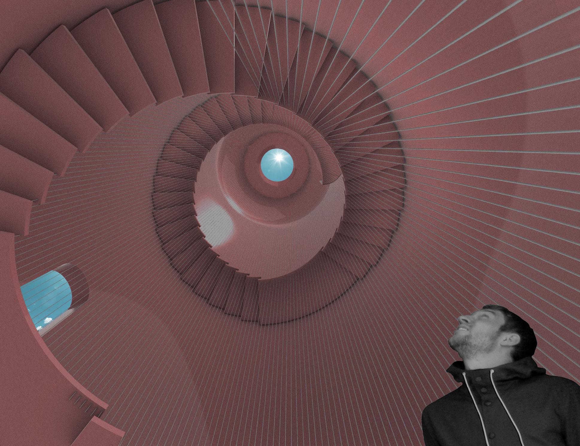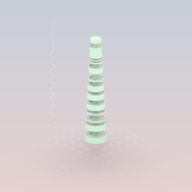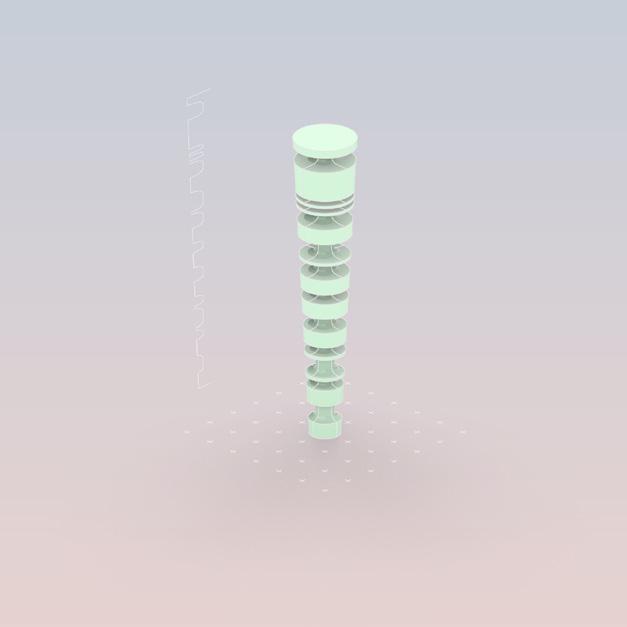function” and invites the visitor to play with the space while also being fully present at the moment. With a nostalgic form to some, the acoustic silos are placed throughout the proposed design and positioned to look out to different directions on the site. A stream of light from the top lights up at the bottom of the silos, guiding the visitors’ footsteps to the flight of stairs. The view ing decks above can act as points to look out and wander freely in thought, or be space for a couple wanting a more intimate space.
