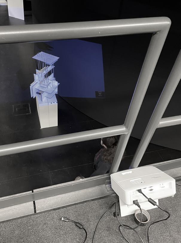 The juxtaposition of different programs helps visualize the potential of blurring the boundaries of different activities. This woven natrure of different spaces enhance a place to read as playful and motivates users to explore what’s around them. Having the benefit of the technology, moving images in the form of .gif files were projected onto selected surfaces of the physical model instead of