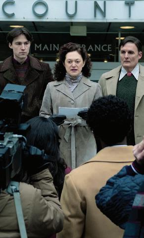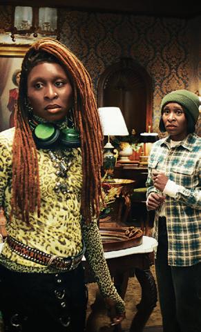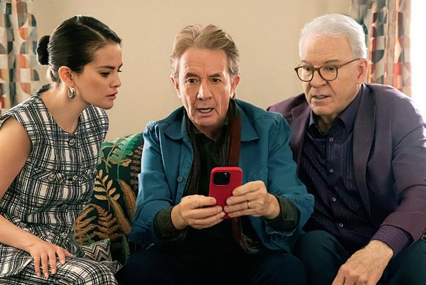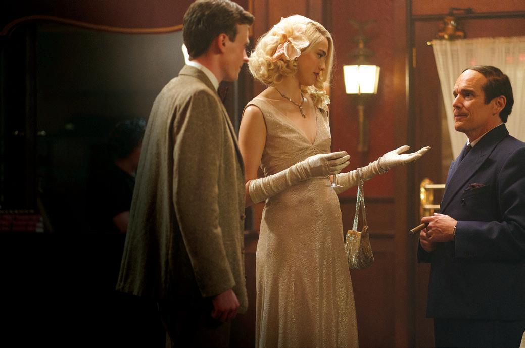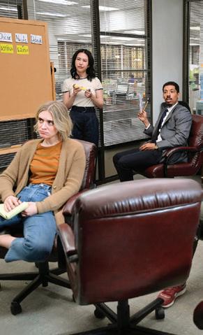prep, Friedberg and codesigner Leigh Bell immediately set up a workroom with cutter-fitter Valerie Keiser and made-to-order coordinator Kit Scarbo. “It was an endless machine of churning out costumes. We produced beyond-counting hundreds of custom-made.” The team also scoured the internet for designer vintage resources for their retro-chic look. Color is so paramount that each time a scene was established, they had to map out the entire episode to coordinate color palettes. Shooting four and five episodes a day, their talented background crew were changing the actors into different characters and dropping them into a different episode, often with an entirely different palette. “It speaks volumes to Leigh Bell and my ACD Samantha Schwartz. They were unbelievable in keeping it all organized and together.”
