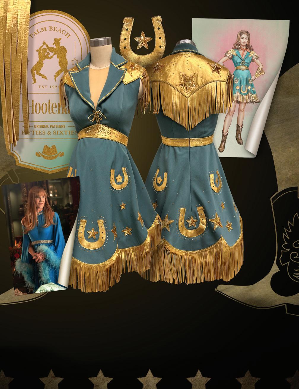 The workroom made square dance costumes using original patterns from the ‘50s and ‘60s for a hootenanny, and Jamie Castenada, a protégé at legendary Nudie’s Custom Western Wear, did the chain stitching and stoning on a custom, museum-quality gown for Marjorie.
