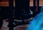 Friedberg knew she wanted to put Maxine in yellow to have her stand out among the dancers in black and white. She actually had two different versions of the pants made. One is lace with floral appliqués and a nude lining. For the dance number, the other has a sequin lining that catches the light when Maxine moves, and the removed halter top becomes a cape with a sequin lining.