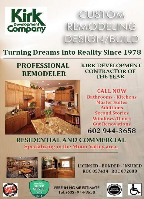 If you are looking to remodel, update or need help designing your kitchen or bath, call KIRK DEVELOPMENT for a free in home estimate at 602 944-3658.