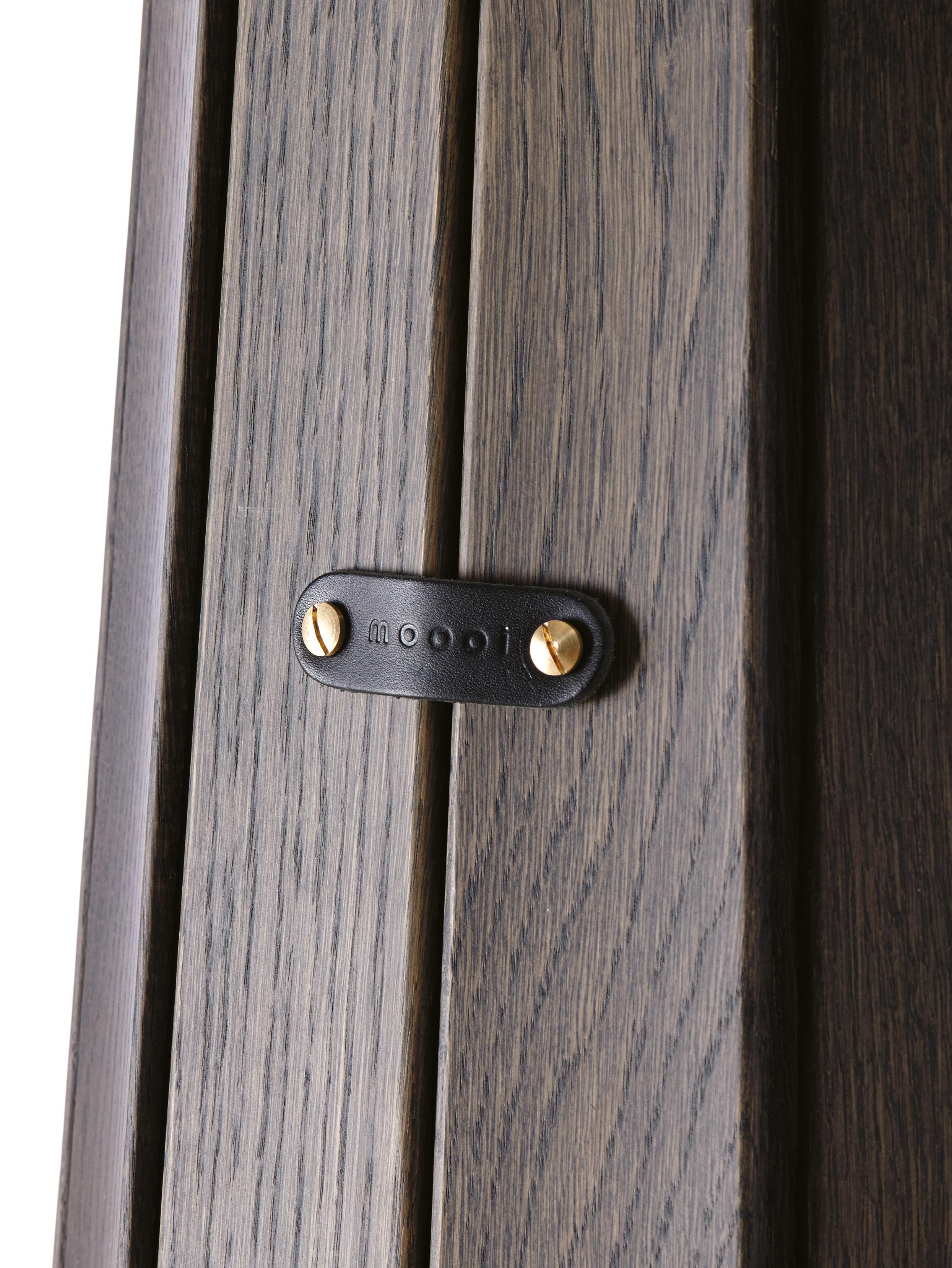 The vertical slats made of oak add a softness and a natural feeling to the Container family.