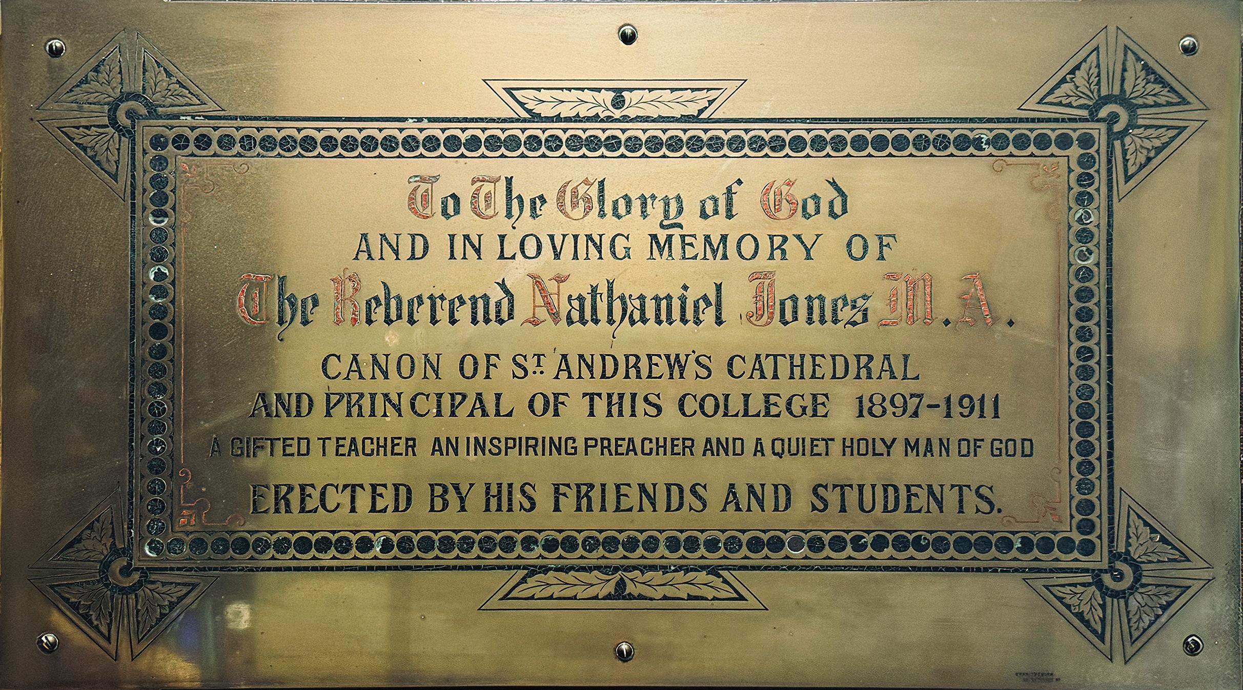 ▴ Wall Plaque in John Chapman House remembers Nathaniel Jones as a ‘gifted teacher, an inspiring preacher and a quiet holy man of God’.