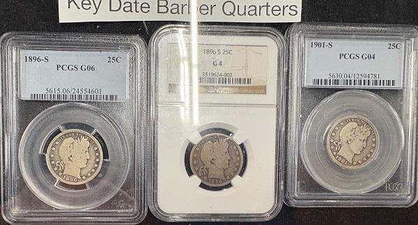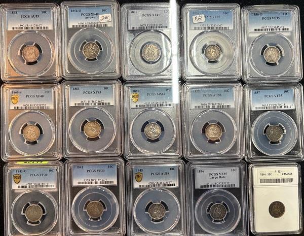 Liberty Seated Dimes and Key Date Barber Quarters displayed in SC