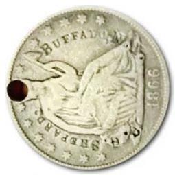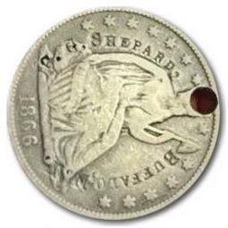 Successful businessmen of yesteryear routinely carried pocket watches. If they were a mason or member of another fraternal order, they might also carry a personalized coin to serve as a badge and/or conversation-starter. The coins were often holed and attached to watch fobs; sometimes, gifted by a loved one. Most were engraved but many were counterstamped. The 1866 Liberty Seated half dollar, on the next page, is an example. The stamping reads: C.G. SHEPARD. / BUFFALO, N.Y.
