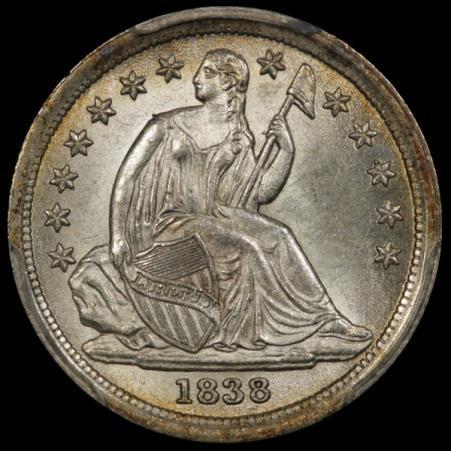 There are two different sizes of stars for 1838 dimes; again too minor a distinction to matter to me. For those wanting a deeper dive, there are dime specialists who collect every distinct die variety - often involving differences in the placement of the date, which was added to individual dies by hand. They denote this specimen as being of the Fortin 112 (die) variety. The grading services will, for an extra fee, attribute coins to their proper die variety, and some prior owner of this coin did so.