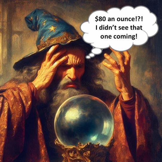 It wasn’t just our friendly wizard who didn’t predict skyrocketing precious metals prices. None of last year’s forecasts were even close! That’s understandable considering the remarkable two year run gold and silver have experienced. Gold was up 27% in 2024 and 66% in 2025; Silver was up 20% in 2024 and a stunning 145% in 2025. Those phenomenal two years are why most forecasters are calling for a period of consolidation or a brief price retrenchment in the first quarter of 2026.