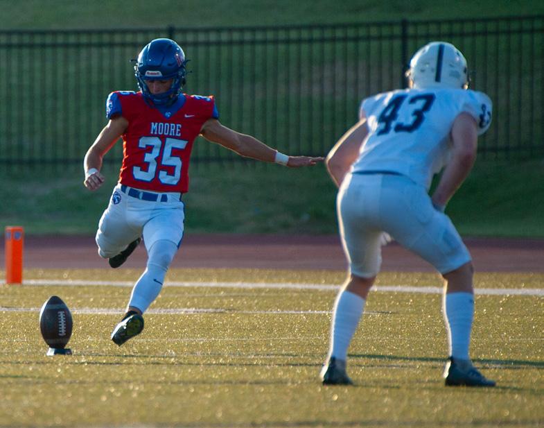 Ayear ago, Liam Evans was grinding away in the summer heat, honing his kicking skills for one last ride through Oklahoma high school football. One of the top kickers in the country, Evans had his sights set on a successful campaign with his Moore Lion teammates, followed by greater challenges as a member of the Oklahoma Sooners.