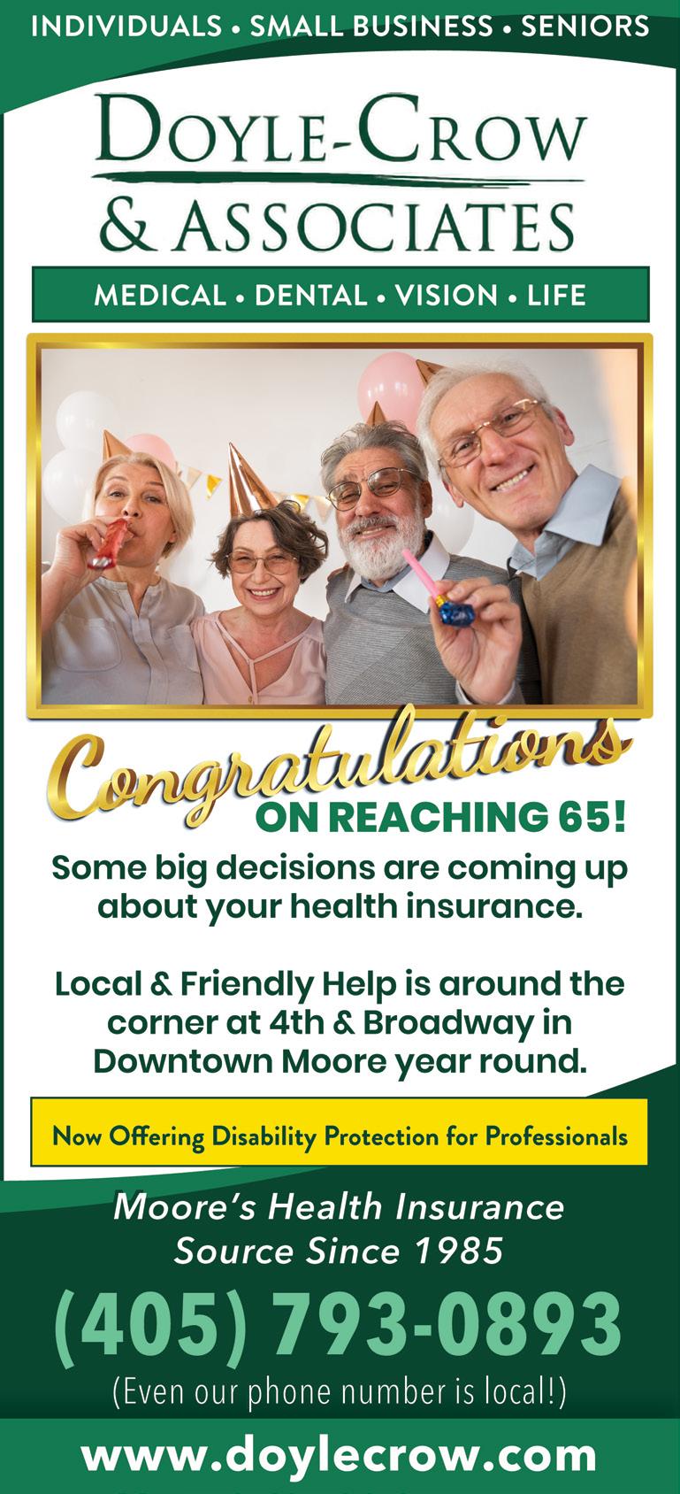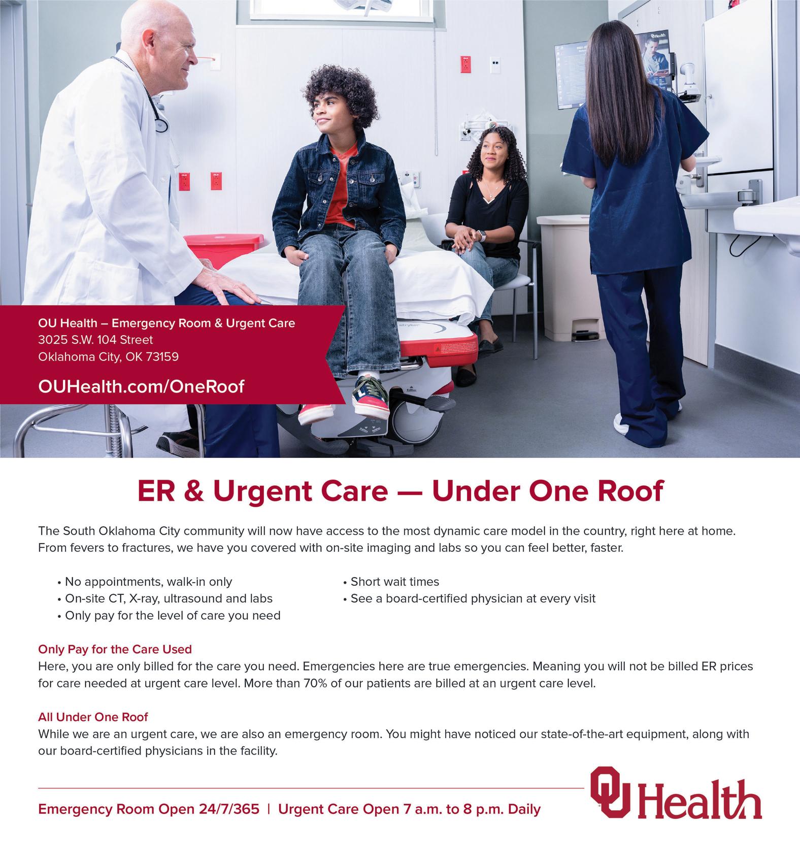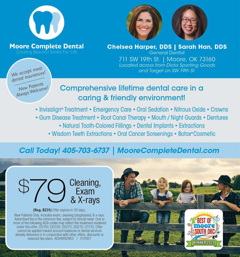 Classen Urgent Care: NEW HOURS STARTING AUG. 1 6 am – 8 pm daily 365 days a year (no appointment needed!) Classen Family Medicine: Monday thru Friday, 7 am – 5 pm WE HAVE FLU, PNEUMONIA, AND OTHER VACCINES, AND WELLNESS VISITS. SEPTEMBER 2023 | MOORE MONTHLY | 47
