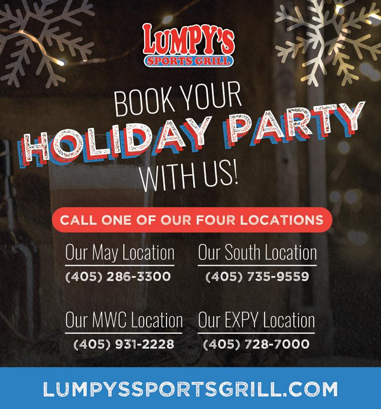 Your Local Go-to Sporting Goods Store Since 1981 Baseball • Softball • Football Basketball • Wrestling Track and field • Volleyball Soccer • Team Uniforms Athletic Shoes & Equipment Lettering • Letterman Jackets Bat re-gripping • Glove re-lacing Specialty Services 609 N. Moore Avenue • Moore, OK 73160 • (405) 672-4230 NEW CITY SHOPPING CENTER, MOORE THANKS FOR YOUR VOTE! Everything You Need To Be At The Top of Your Game… Now You’ll Find In Your Neighborhood NOVEMBER 2022 | MOORE MONTHLY | 47