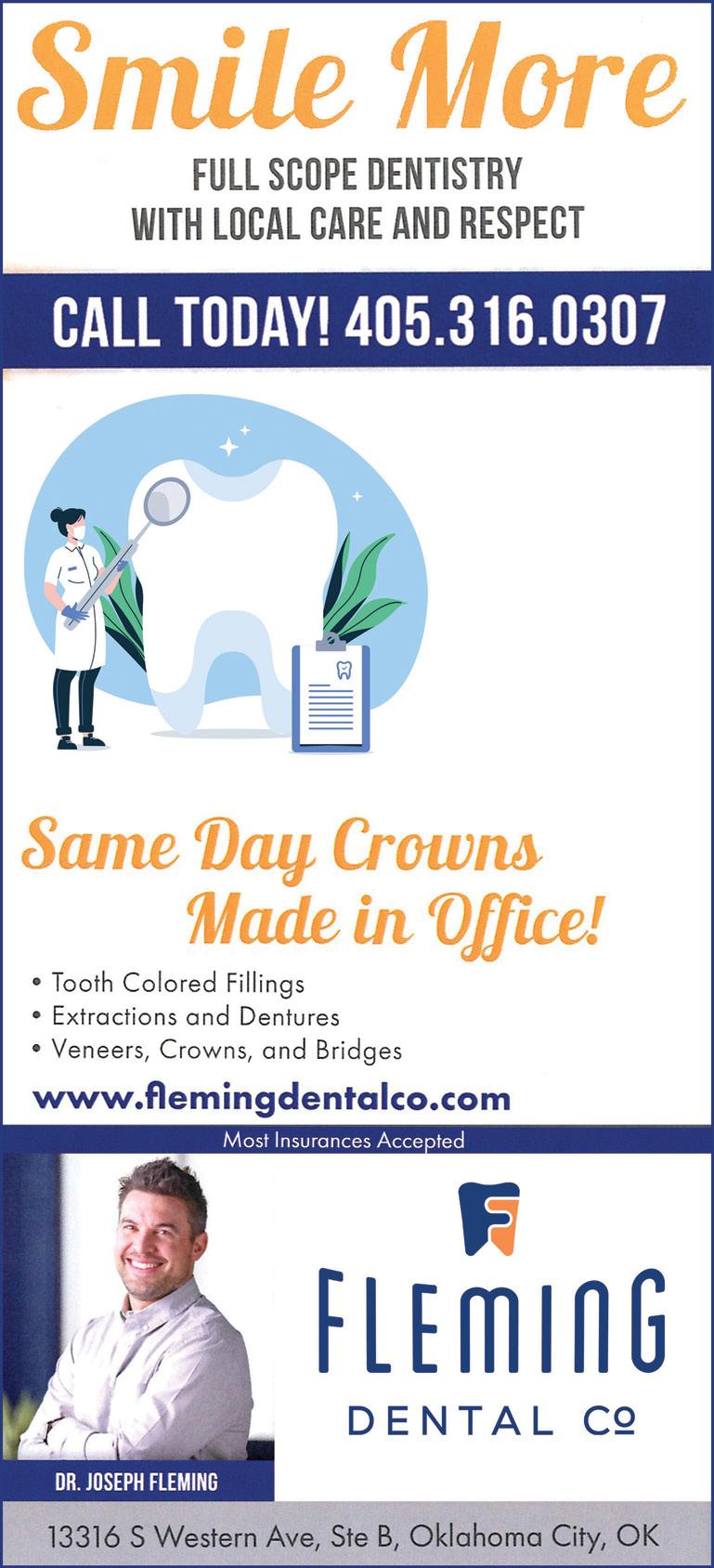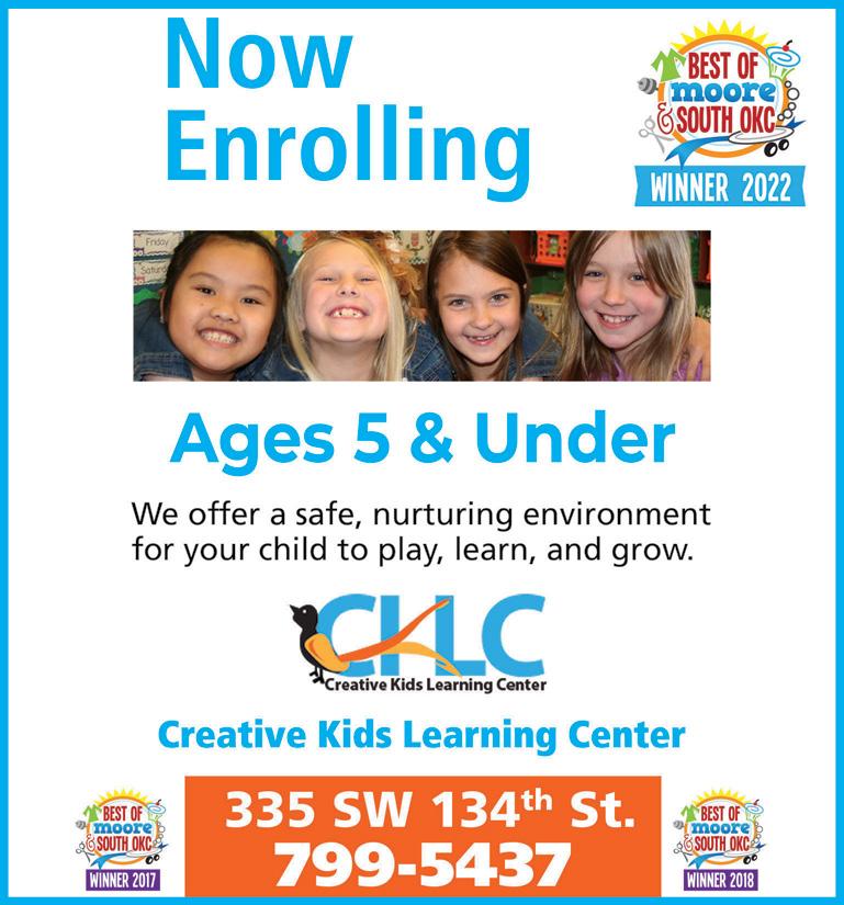 For ad placement, specifications and rates, call or email Aleta Wheelbarger 405-659-7224 aleta@mooremonthly.com Moore Monthly is a monthly publication by Trifecta Communications, serving Moore, South OKC & Norman. Moore Monthly is free to the public. Reproduction in whole or in part without permission is prohibited. Moore Monthly is not responsible for the care and/or return of unsolicited manuscripts, artwork, photography, books, or any other material that is submitted for possible publication. PO Box 6936 Moore,