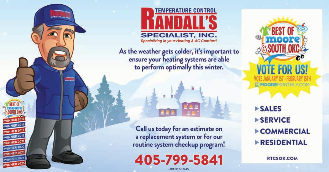 We’re excited about this new category and the talented folks who have submitted videos this year. Because it’s a new category, we were still accepting entries right up until the magazine went to press, so those entries will be posted on the MooreMonthly.com website on January 1st. Voting for the Best Vocal Talent category will have its own dedicated page on MooreMonthly.com, where voters can view the videos and vote for their favorite. The top three finalists in this category will perform live during the 2026 Best of Moore & South OKC Awards dinner at the Riverwind Casino in March.