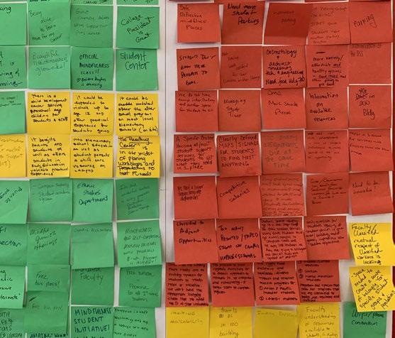 every day, such as students, faculty, staff and campus leadership. These conversations took many forms, including one-on-one sessions, stakeholder meetings, workshops, activities and campus-wide forums. No matter the setting, the goal remained the same: hear from as diverse a group of individuals and organizations as possible in order to ensure that everyone’s needs are being addressed as we move forward.