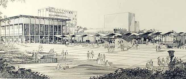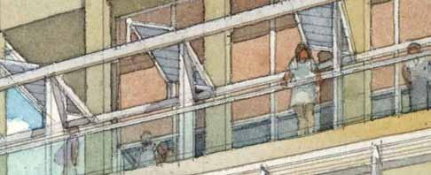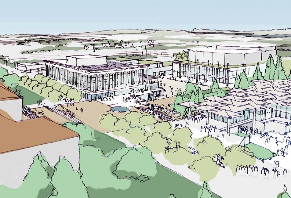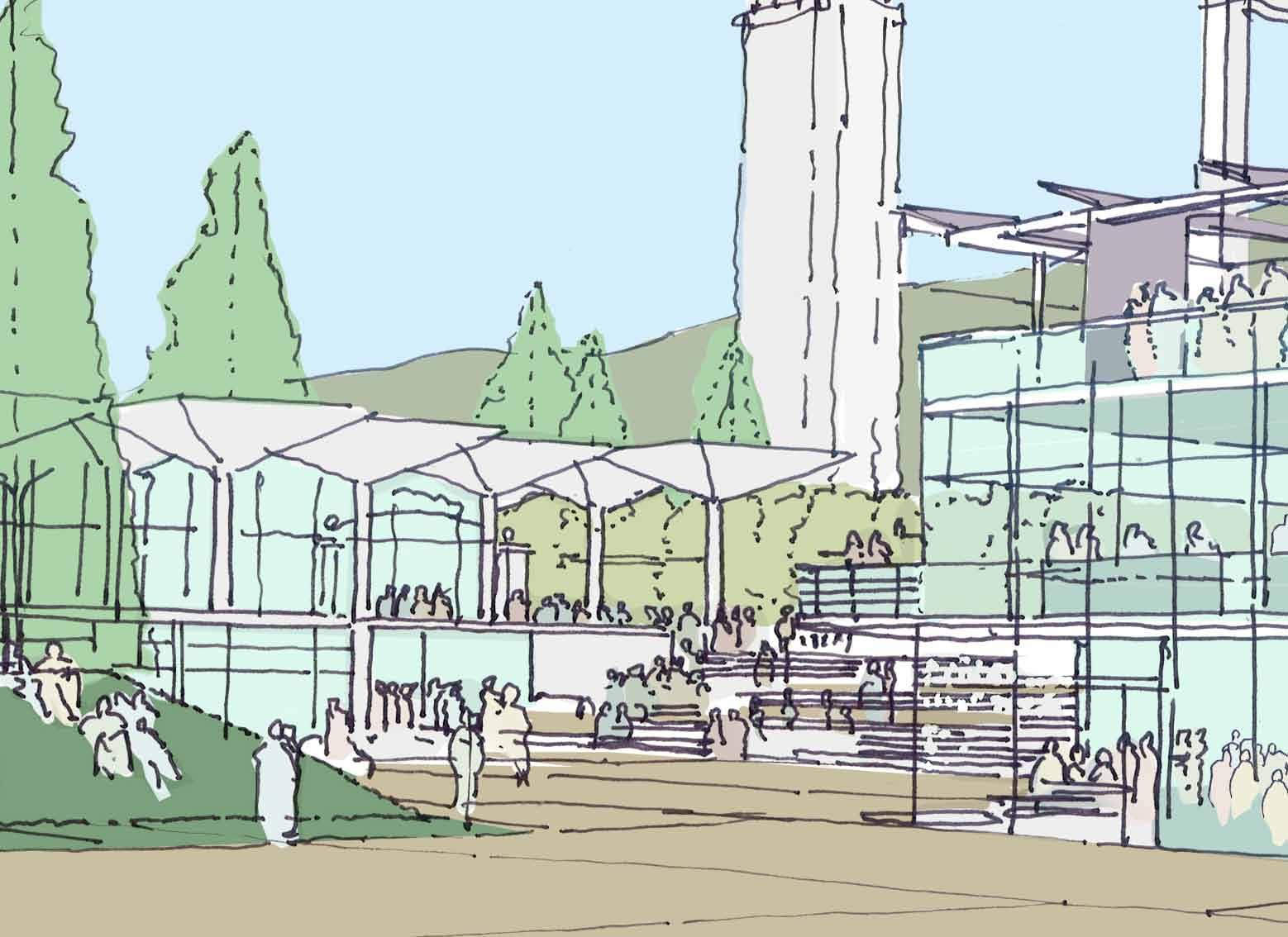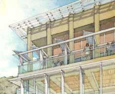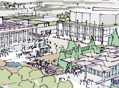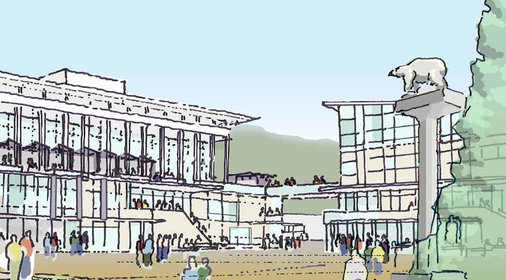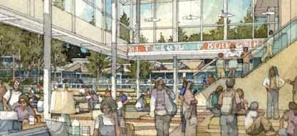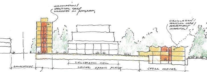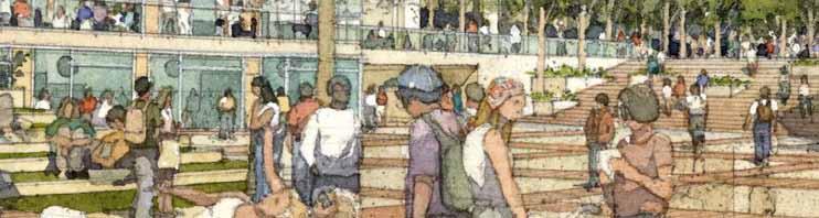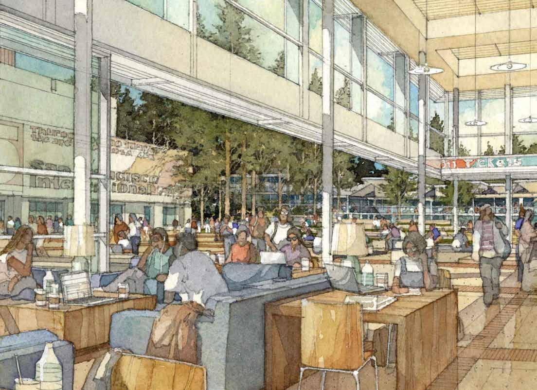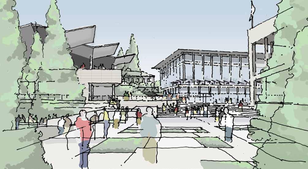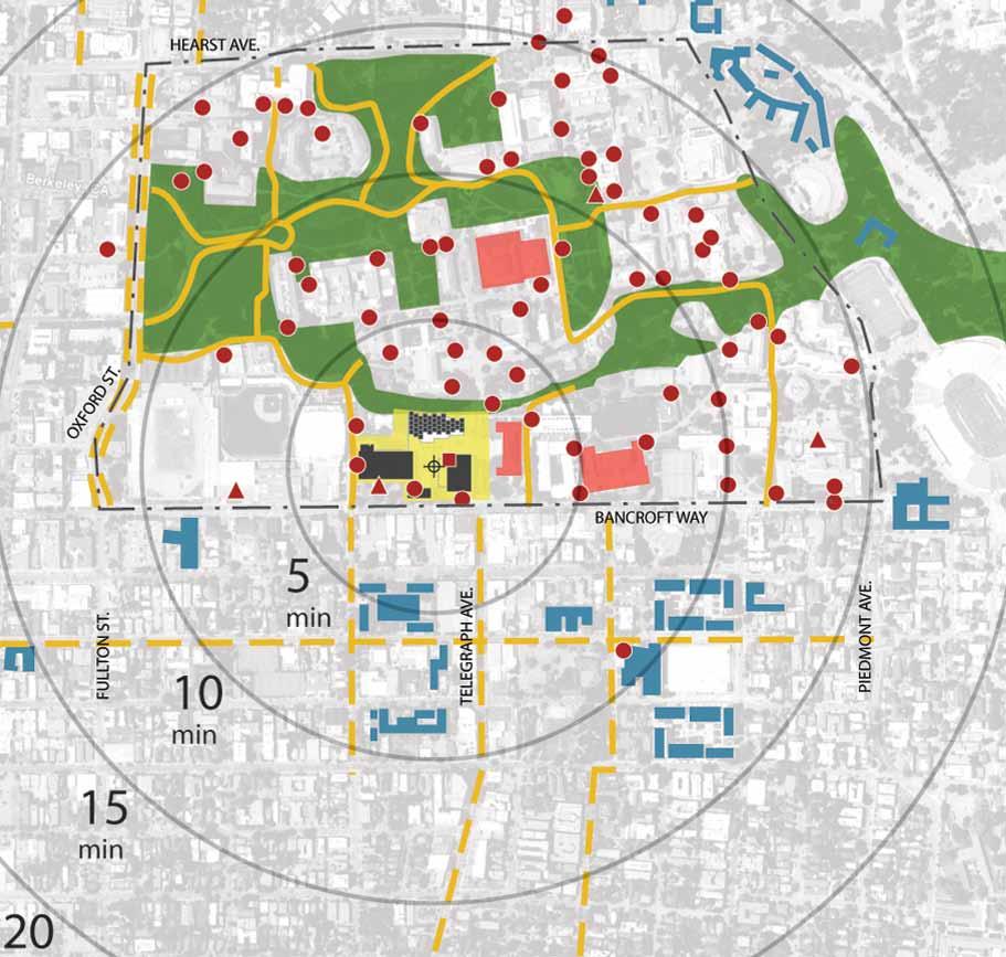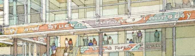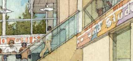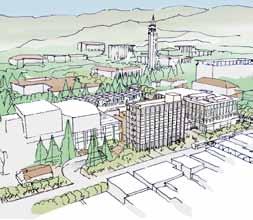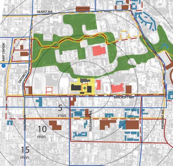 in need of programmatic and physical redesign in order to provide undergraduate and graduate students with a high quality facility for student life appropriate for today’s environment at Cal. Moreover, the new Student Community Center acknowledges its location as the threshold between campus and community, and academics and commerce. As one of the main entrances to the campus, it projects the values of the university while being a good neighbor to the city. It embodies the spirit and aspirations of the students and visitors and celebrates the campus tradition of inclusive multiculturalism and the protection of free speech. The SCC also embraces the movement towards a sustainable future where awareness of our ecological challenges is prominently featured through operational practices that support good stewardship of the environment.