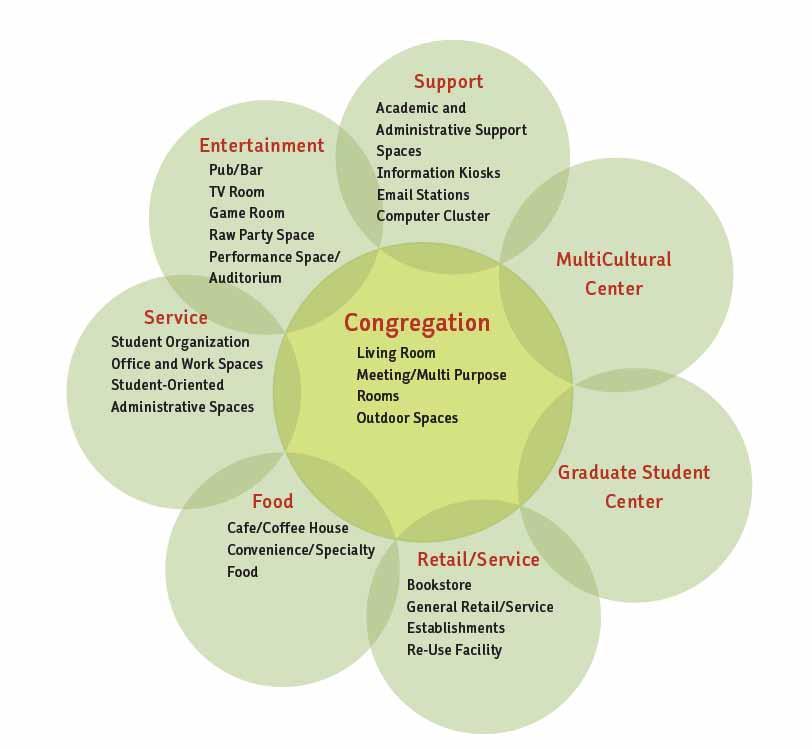 performing, socializing, meeting, or studying. Students will find a nurturing place for rest and relaxation that offers a renewal of spirit in a peaceful retreat for meditation and personal reflection. It is thus a place to meet friends and new acquaintances and get re-charged during the course of daily student life.