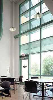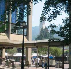 with its commuter lounge where both bus and bike riders access sustainable community services and absorb information on current events ranging from student government proceedings to local or world wide radio and TV broadcasts.