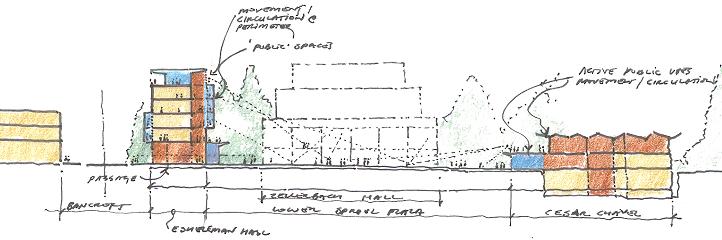 • Threshold between campus and community, academics and commerce