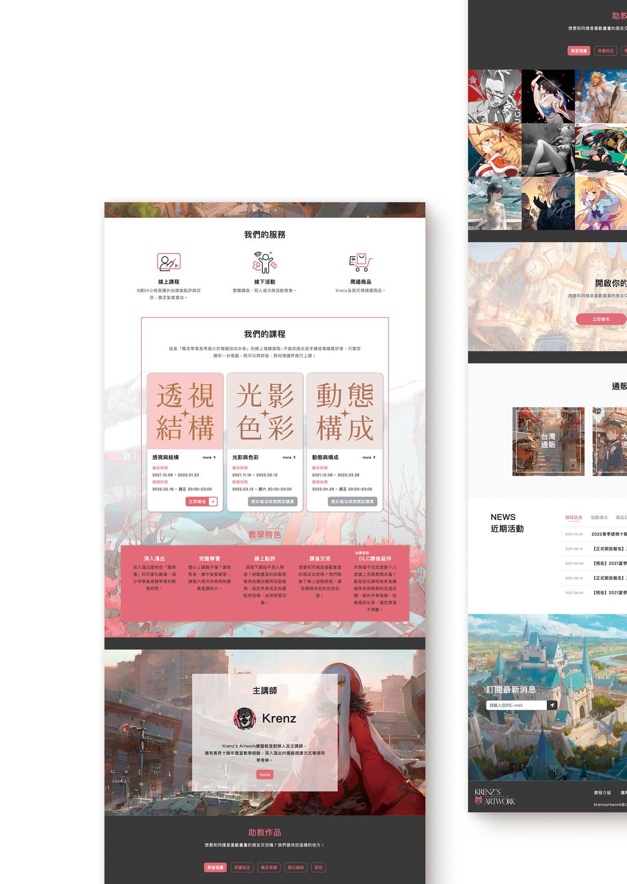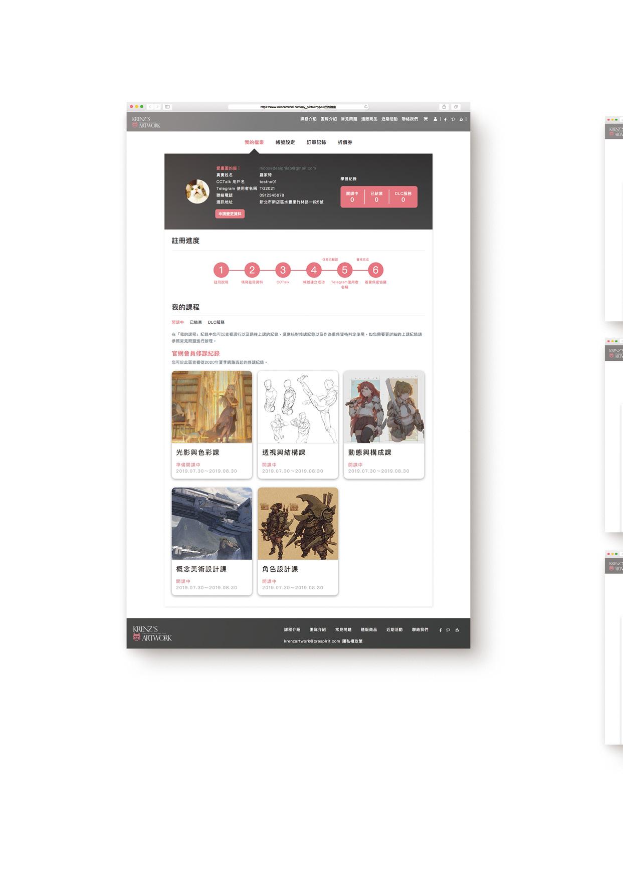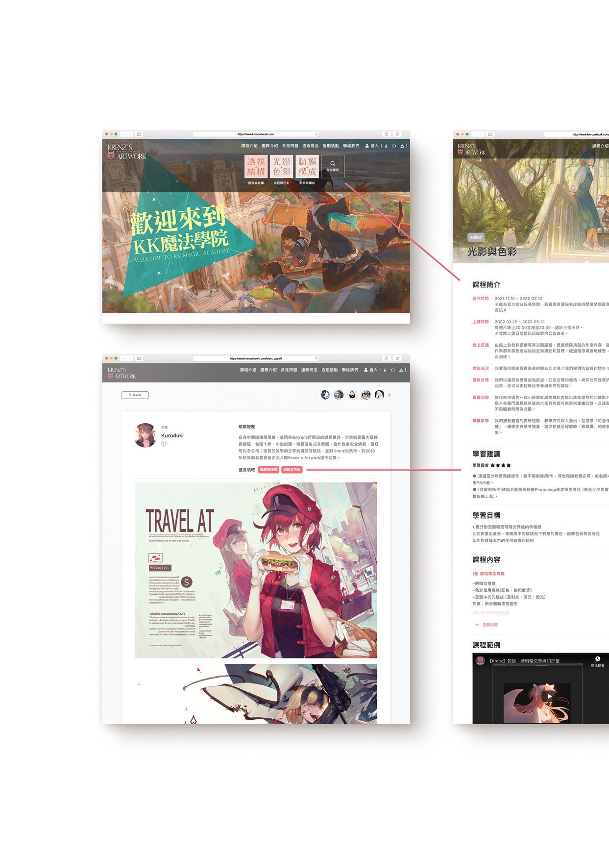 Krenz's Artwork 是我首次參與設計結構較複雜的中型網站 , 從 最初客戶端的需求蒐集 、 整理與資料分析 , 到網站架構該如何 部署 、 使用者操作流程的規劃與各頁面的介面設計 , 在這個過 程中 , 該如何與客戶溝通 、 釐清需求 ; 沙盤推演用戶問題 、 找 出淺藏的隱性需求;與工程師協作 ,在每個環節都有新的考驗 , 也促使我改變及修正過往的思考方式與工作模式 。