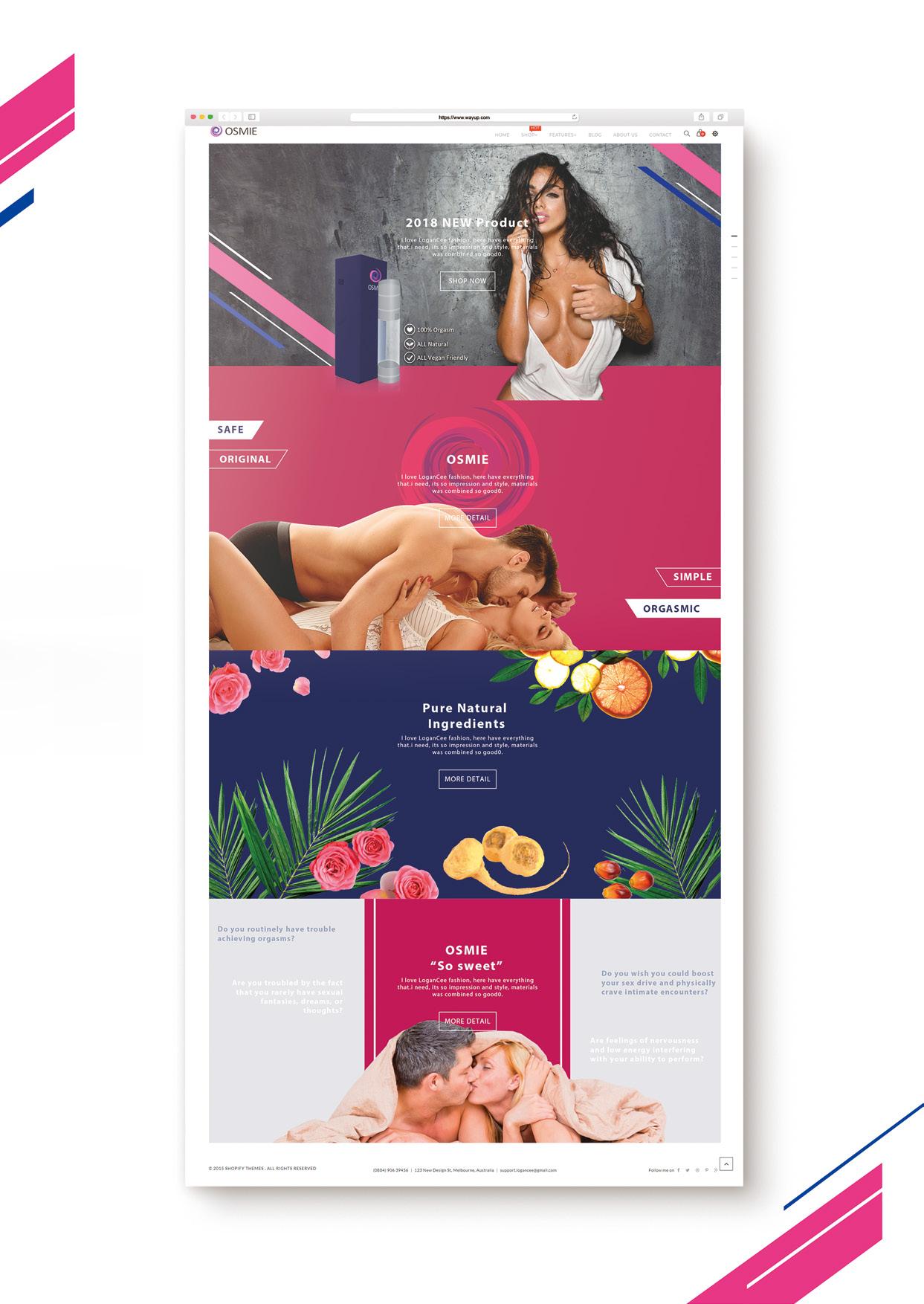 OSMIE 是專為女性設計的情趣用品品牌 ,因此在整體視覺上 , 以女性會喜愛的色調為主 , 並適度拿捏煽情尺度 , 使其不會 過於情色而遊走在情慾之間 。