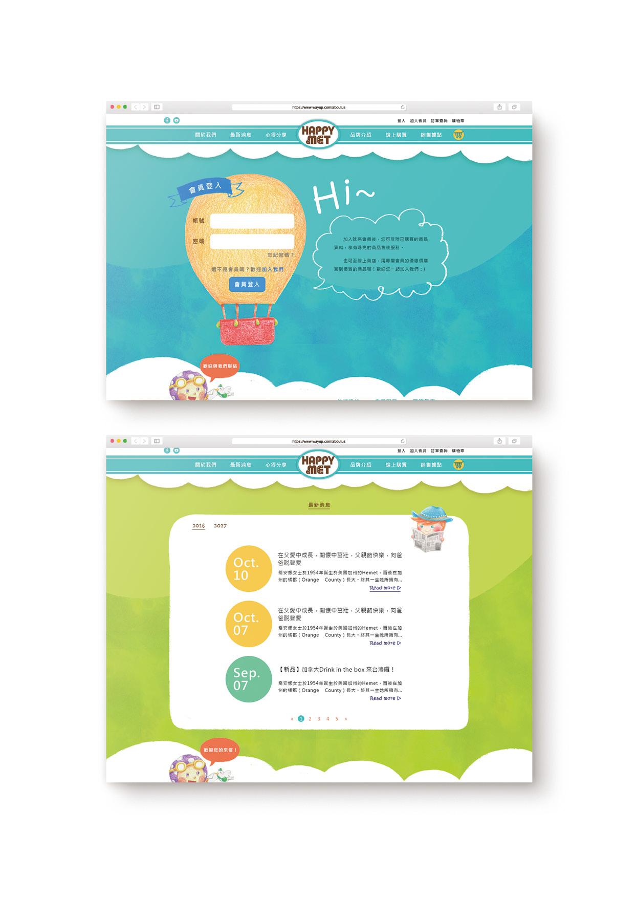 每個頁面都有自己獨特的色系予以區別 , 並隨處可見 HappyMET 活潑可愛的吉祥物 穿梭於各頁面中 。
