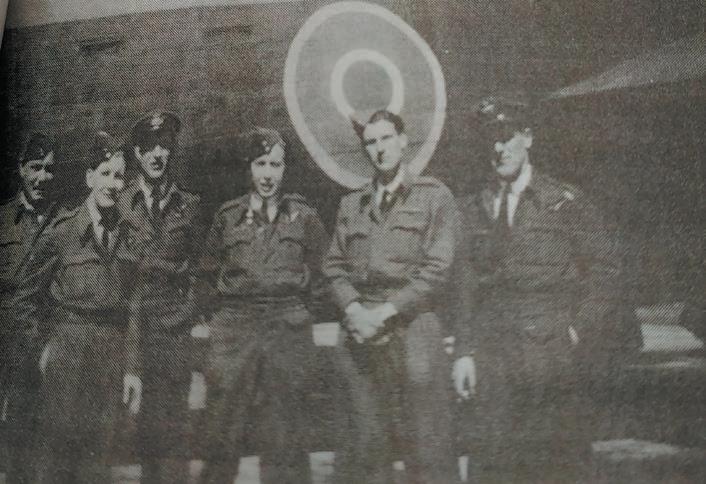 Schauenberg and his crew in front of their Lancaster Bomber with No. 49 Squadron. The Assiniboia native is third from left. Photo courtesy Assiniboia Times