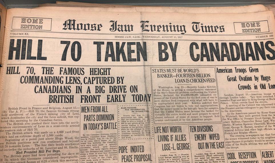 Canadian troops’ capture of Vimy Ridge required immense planning during the First World War, but grabbing Hill 70 several months later proved to be one of the “hardest battles” they fought. While a great victory 105 years ago this month, 23 men from the Moose Jaw area died during the battle. According to the Saskatchewan Virtual War Memorial, those men included: