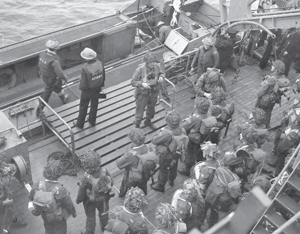Soldiers who took part in Operation JUBILEE, the raid on Dieppe, disembarking from a Royal Navy destroyer in England, 19 August 1942. Library and Archives Canada # 3378727
