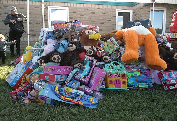 “This is the frst time I’ve experienced a toy run lke this, and to see all these toys and the motorcyclists and everybody… I was taking video as they came into the parking lot and I had goosebumps the whole time,” he said as hundreds of bikers milled around the ever-growing pile of toys. “There’s tremendous support from the