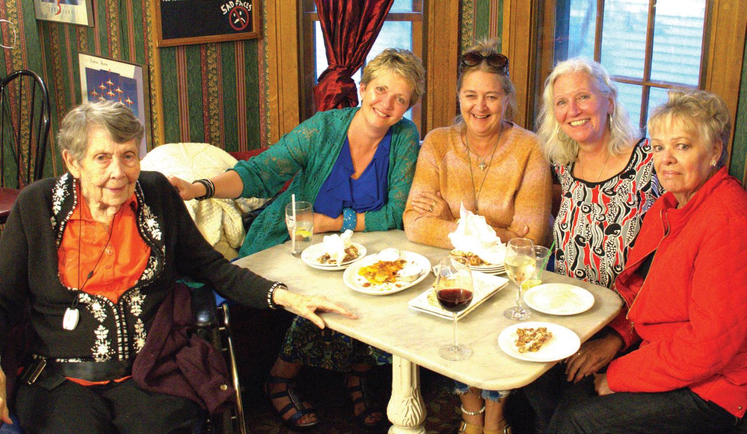 Former employees of Hopkins joined the 45-year party at the same spot the held staff meetings back in the day. Left to right: Gladys Pierce, Bonnie Johnson, Jackie Lorge, Heidi Sackville, and a friend of theirs. Photo by: Aaron Walker