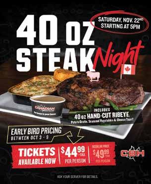 Meat draws start at 4:30 pm 10 draws, 4 free draws, drink tickets, gift card, 50/50