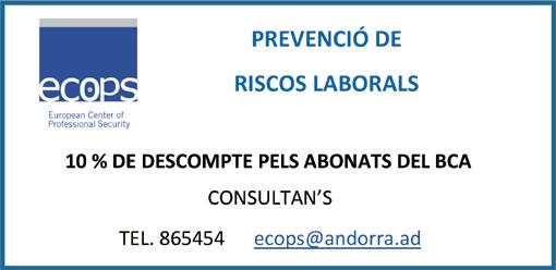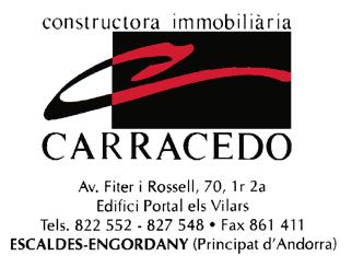 7 BMB NEWS | LA BASE TOT TIPUS DE CONSTRUCCIÓ Tel.: 00 376 868 680 info@edicomconstructors com RENTADOR ESPAI PATROCINAT PER: TEL.: 821 163 MENÚS CASOLANS, FESTES D ANIVERSARI Baixada del Molí, 19 869 077 info@bedandbreakfastlalluna.com Telf. 388 688