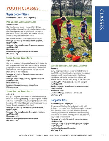 Register for classes and activities online at moragarec.com or in person at Hacienda de las Flores, 2100 Donald Drive, Moraga.