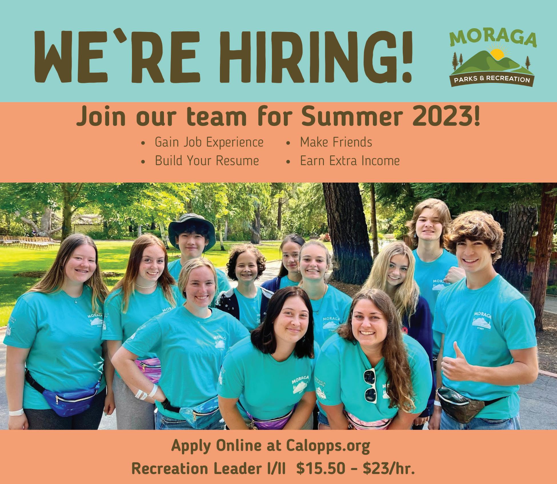 Have fun volunteering this summer as a Counselor in Training (CIT) at Moraga Day Camp! Gain valuable job skills as you work alongside our Recreation Leaders in a fun and safe environment. After an interview process, accepted participants will be trained in leading camp activities, improve customer service skills, leadership, responsibility, and reliability. Recreation Department staff will provide daily guidance and supervision for CITs. Upon completion of the CIT program, participants are guaranteed an interview for the summer Recreation Leader position when they are old enough.