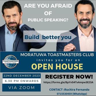 TM Ruchira Fernando President Moratuwa Toastmasters Club 2023/2024Education programs are designed to concentrate on building a professional speaker with the process of attaining true performance skills to target the abilities to be crafted as a good communicator, a passionate leader, and to practice the art of communication in the appropriate hierarchies. Therefore, as a club it is our top mandatory desire to help create a supportive unit with effective, safe club environment to understand the hidden potentials of all the members.