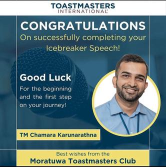 TM Raveen Lankanatha Division Director - Division D District 82, Toastmasters InternationalDear Moratuwa Toastmasters,