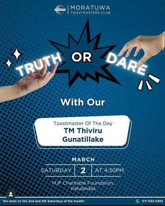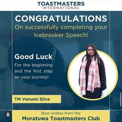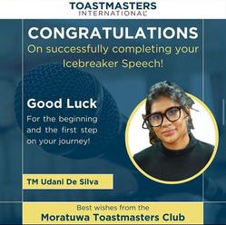What truly sets Moratuwa Toastmasters Club apart is the energetic and enthusiastic atmosphere you've cultivated Your meetings are known for being engaging and fun, fostering a sense of camaraderie that feels more like a family than just a club. This unique sense of togetherness is a valuable asset, as it creates a supportive environment where everyone feels comfortable learning and growing