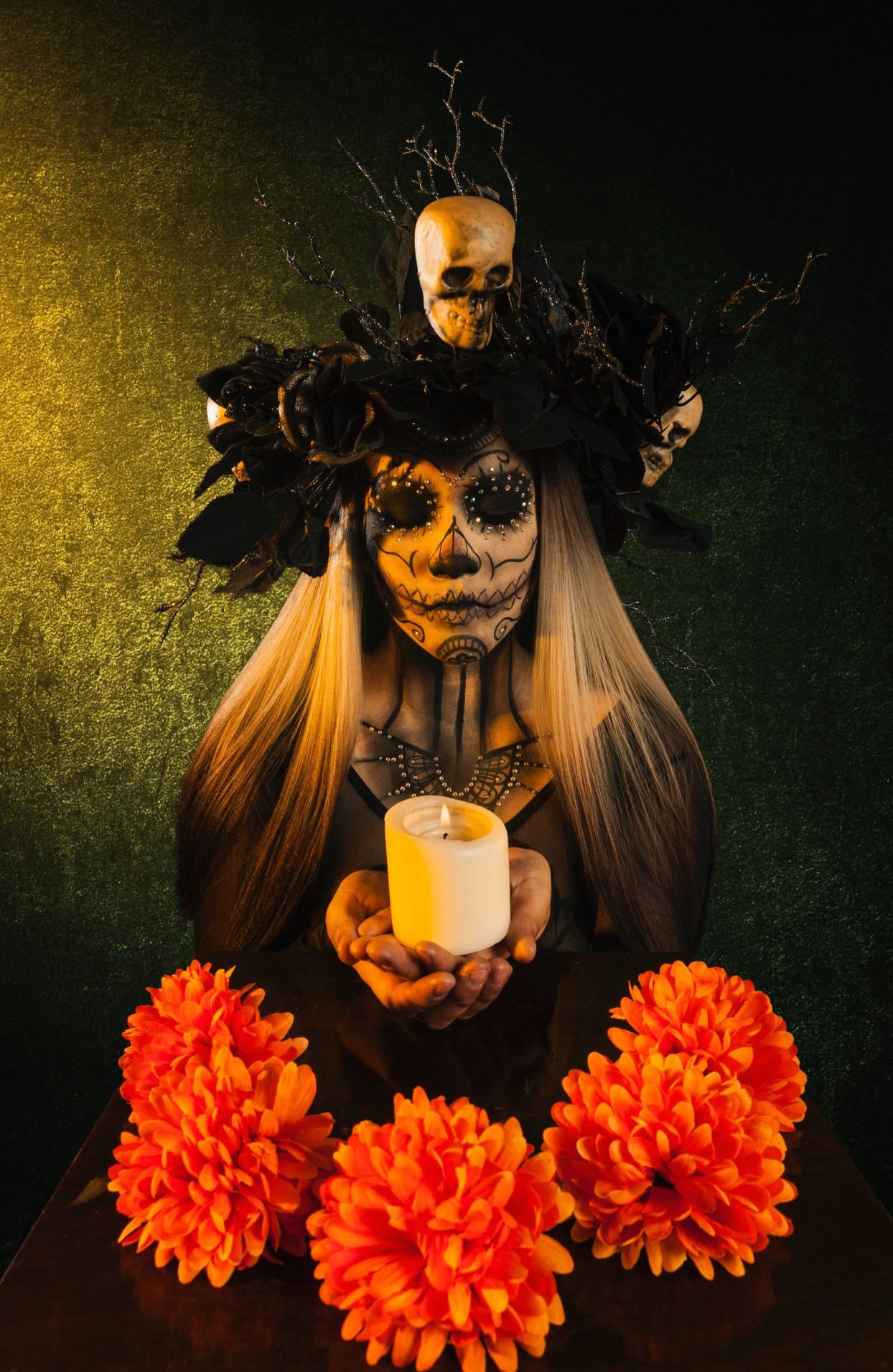 El día 31 por la mañana se pone la mesa del altar de muertos, se utiliza un mantel seleccionado exclusivamente para la ofrenda y se colocan candeleros negros o blancos con velas para adultos y niños, respectivamente, a fin de iluminar su camino.