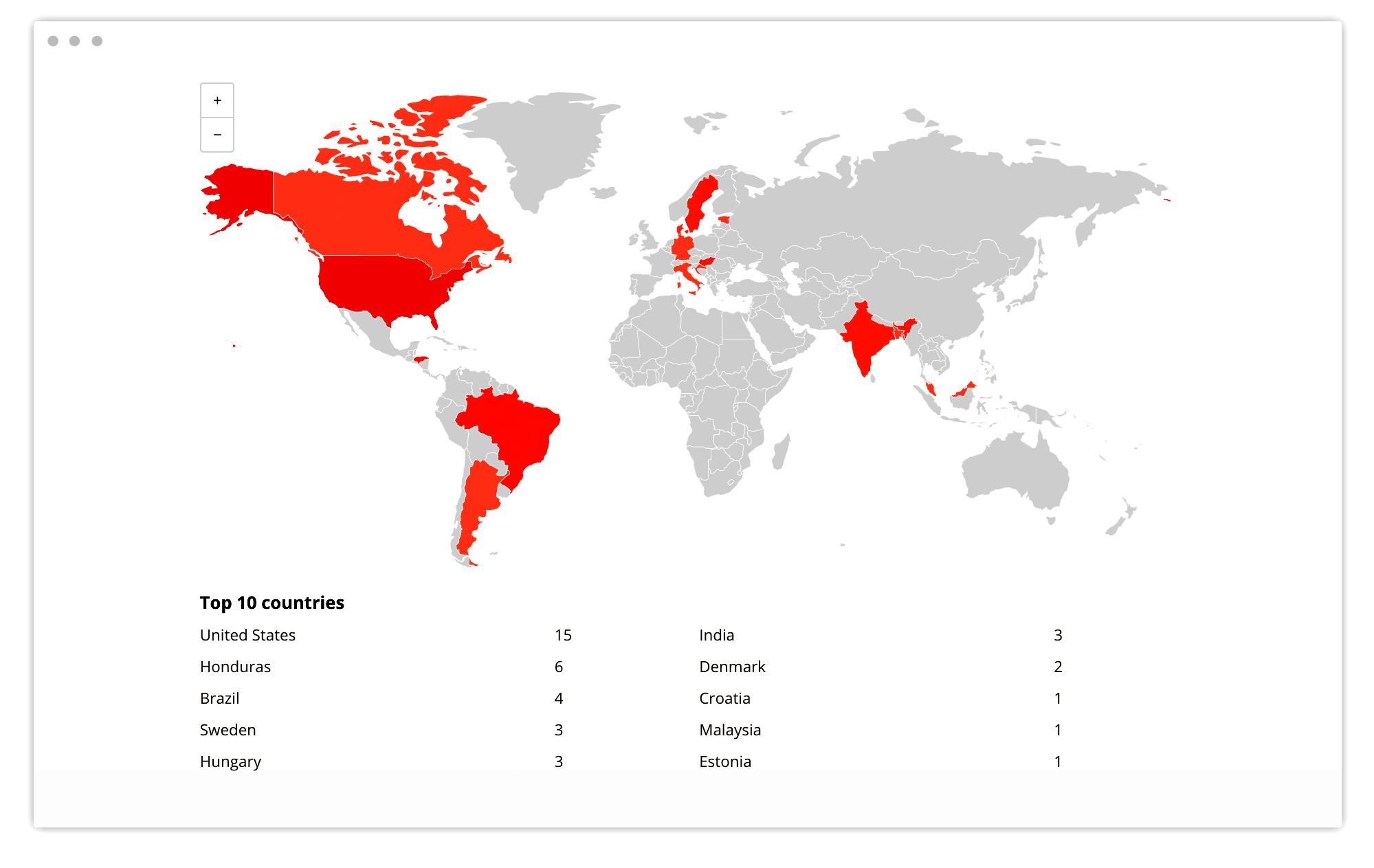 CANADA, CHILE, PAISES BAJOS, ESPAÑA, COSTA RICA, BRASIL, VENEZUELA, BRASIL, HONDURAS, CANADA, ESTADOS UNIDOS, CHILE, ESPAÑA, VENEZUELA, BOLIVIA, ARGENTINA Y ALASKA (57%)