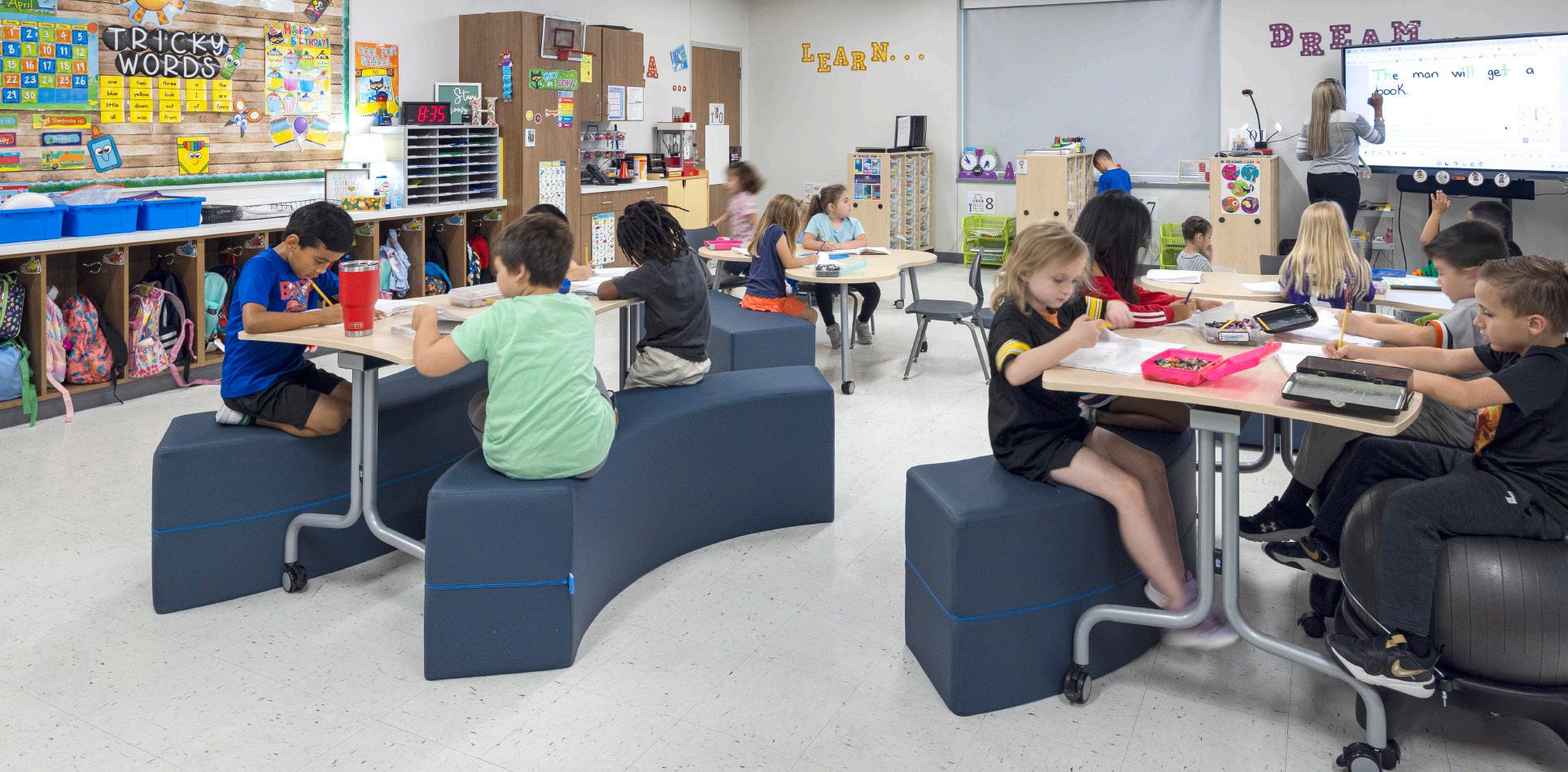 Our furniture planning services support the evolving needs of early learning by creating flexible, functional environments that promote active learning and immersive experiences in every area of the school. Tailored to support developing motor skills, our designs help students feel comfortable and engaged as they explore a world bigger than themselves. To inspire play and creativity, we collaborate with educators to customize spaces that encourage movement and interaction. From active seating that promotes physical activity to flexible tables and soft seating, our solutions foster body control, social connections, and growth at every stage of the educational journey—while staying aligned with the goals of educators to keep students active and engaged.