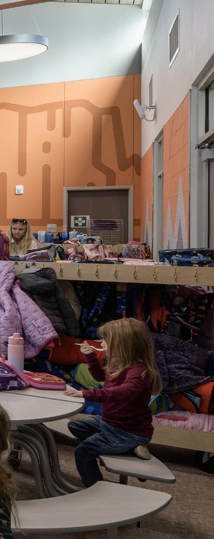 We take cues from our clients’ vision and their local cultural and environmental contexts to ground each school in a sense of place. Graphics and other visual cues are accessible from a child’s perspective and reflect their region. Windows are low enough for children to look out of. From drawing inspiration from the surrounding landscape to designing with empathy, we make sure our interiors feel familiar and rooted in their communities.