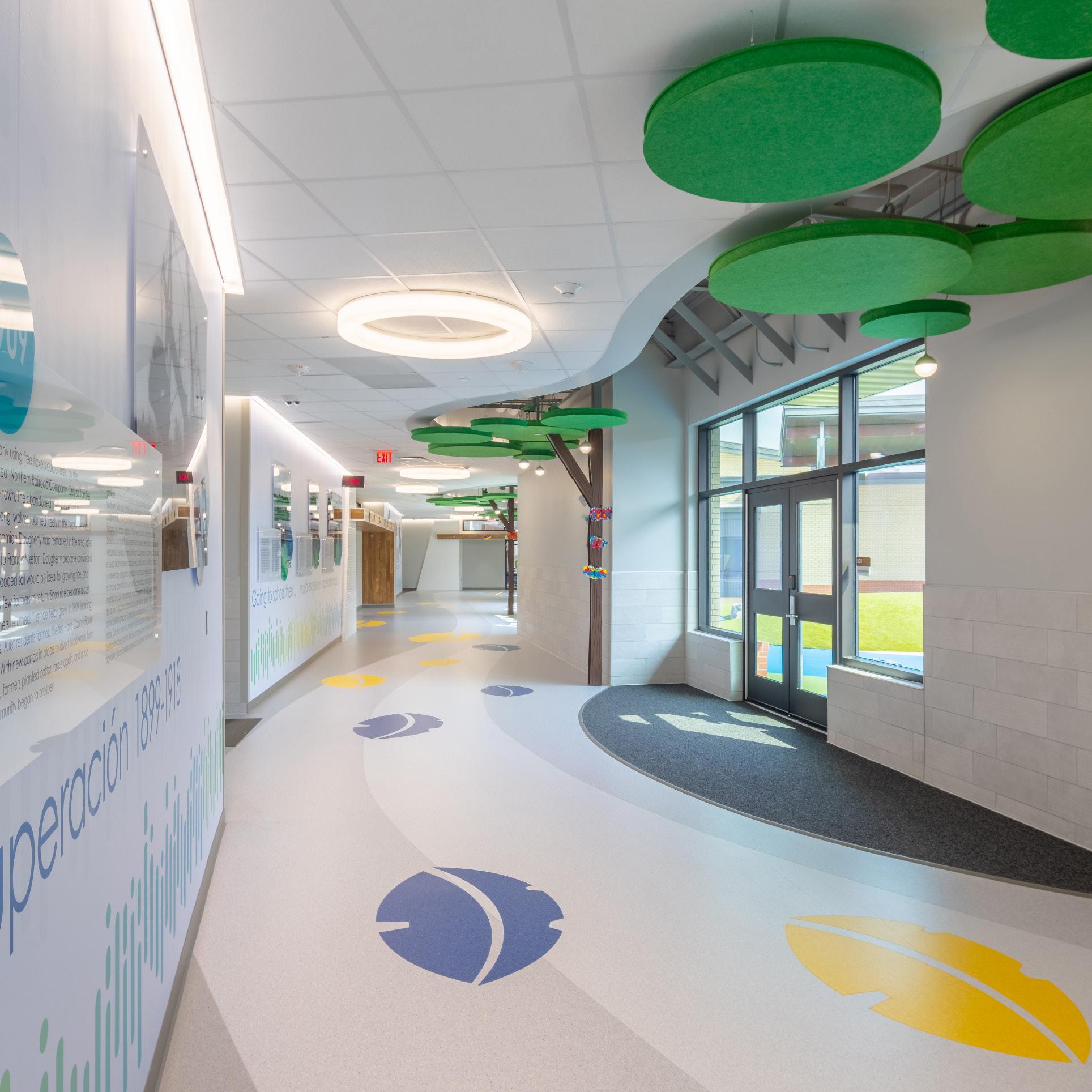 Designing for early learning means crafting wall-sized storytelling and simple wayfinding to go beyond decoration and help students navigate, connect, and feel seen. We focus on where students will look—shifting gazes and guiding them with color blocking, bold imagery, and other playful elements that have the power to communicate across cultures, even before literacy. The designs spark discovery and imagination for little ones who are just beginning their educational journeys.